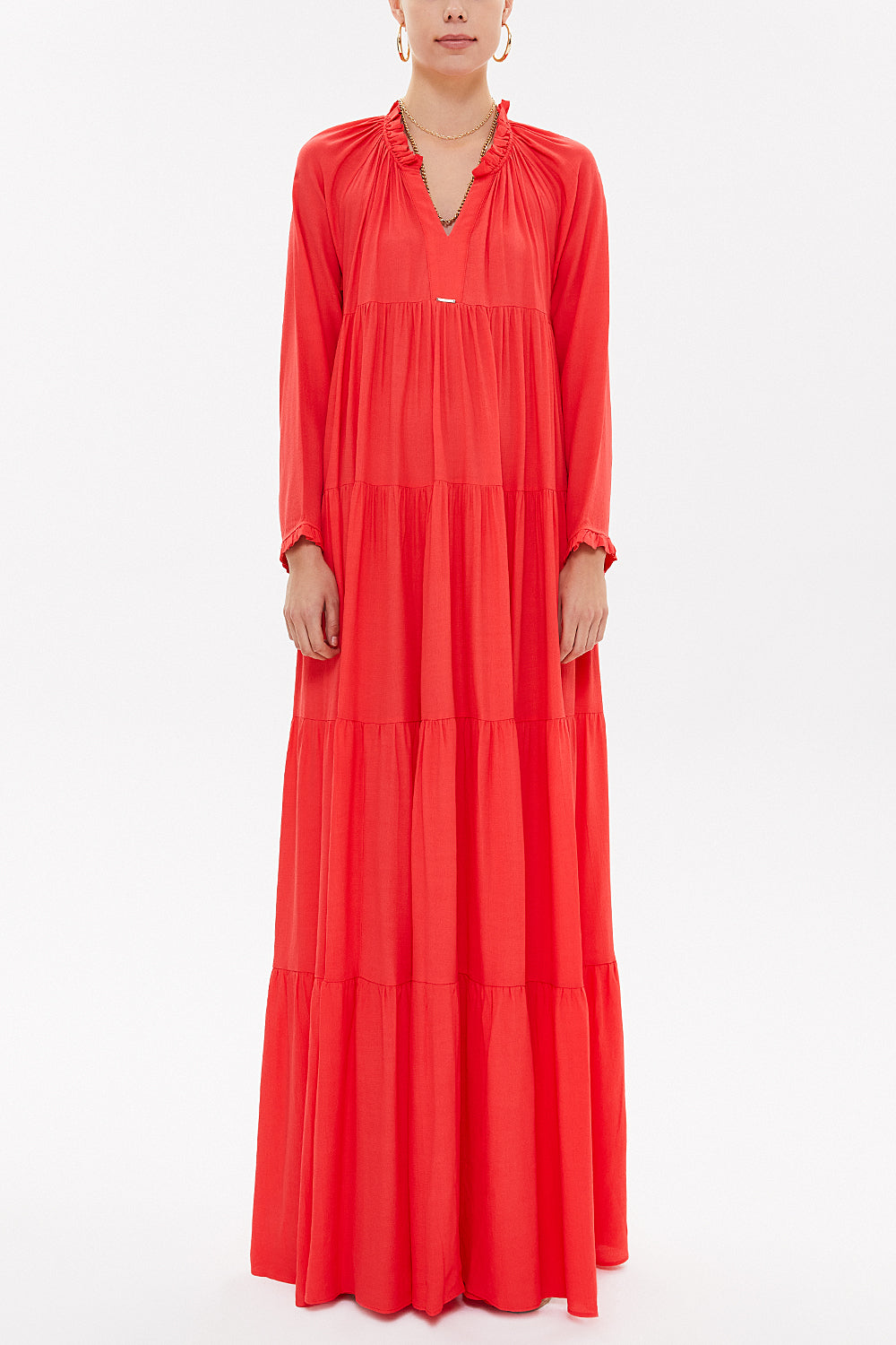 Kırmızı Büzgülü bol kesim uzun elbise 92773