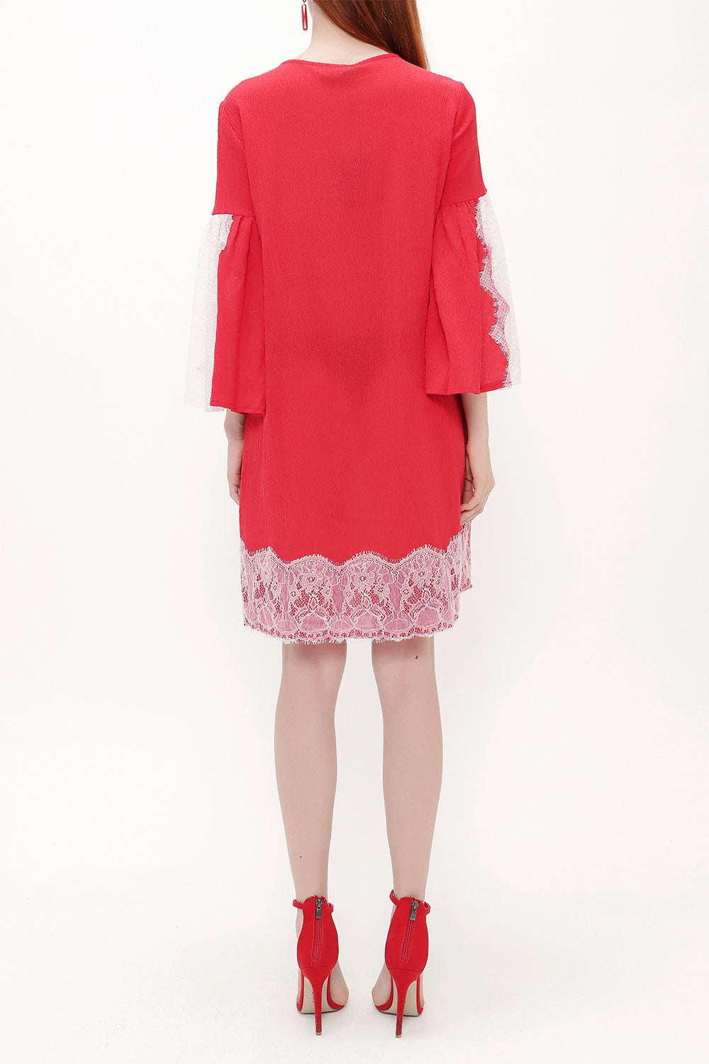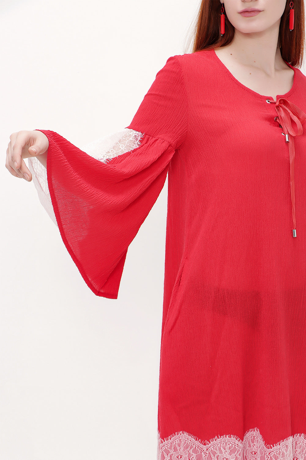 Kırmızı Dantelli ve bağcıklı mini elbise 92332