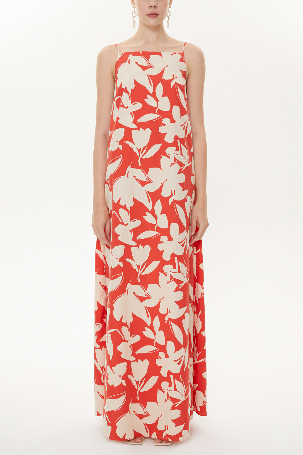 Kırmızı Ekru Sırt dekolteli askılı elbise 93475