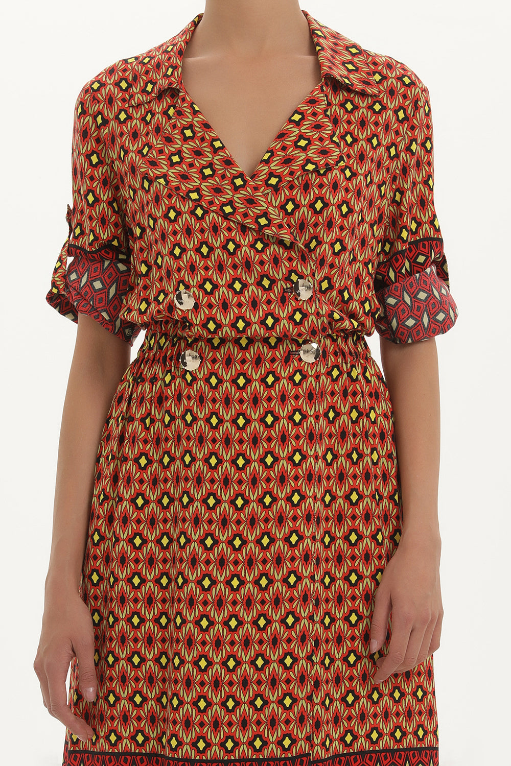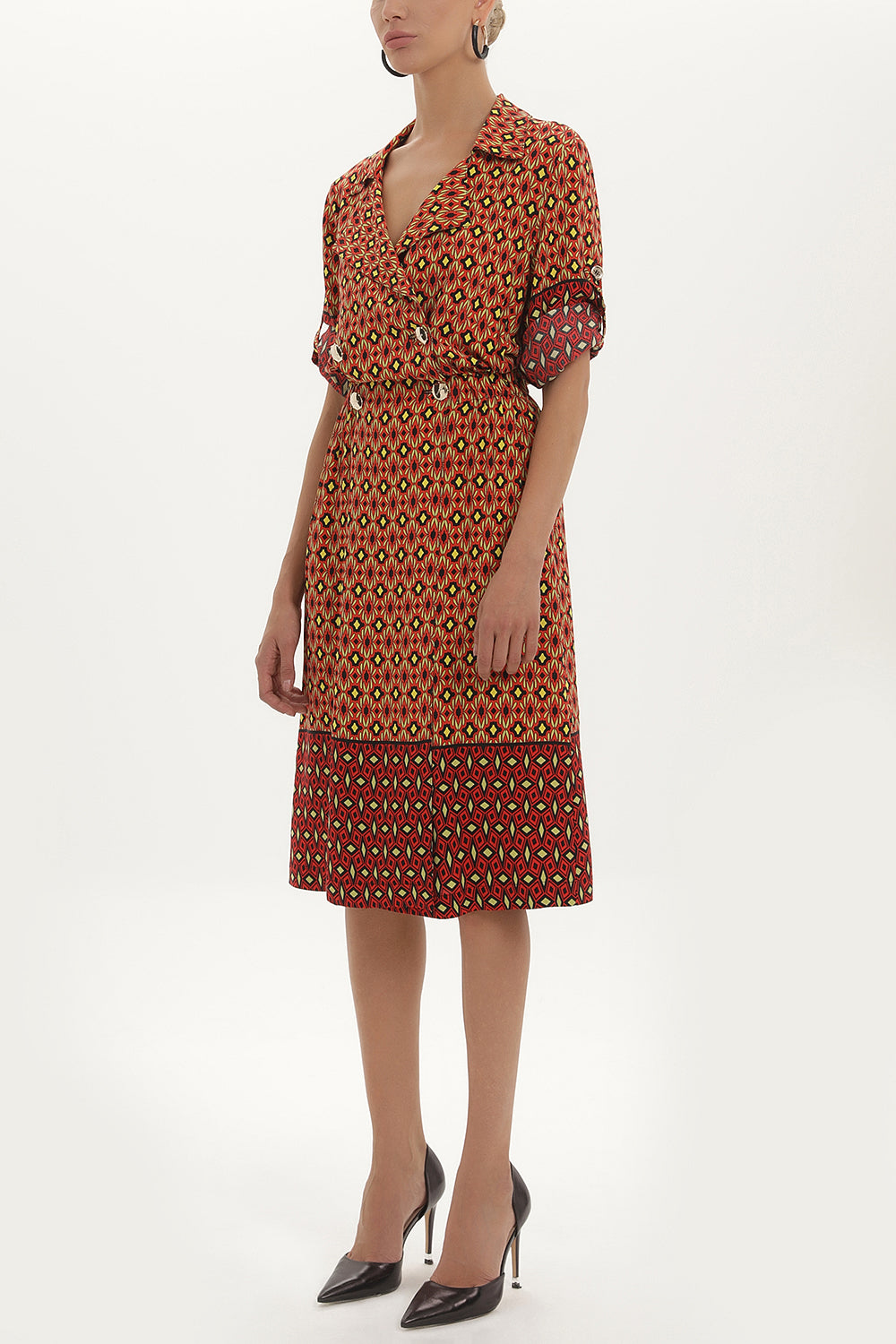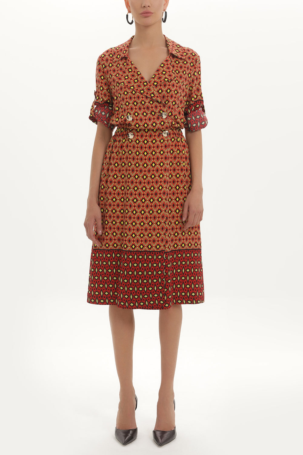 Kırmızı Kruvaze kapama düğmeli midi elbise 92346