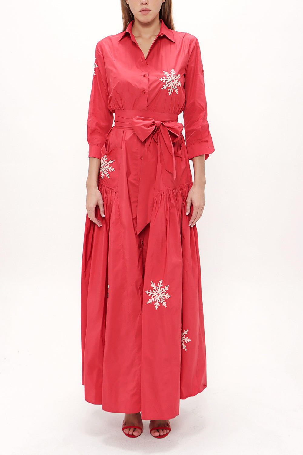 Kırmızı Nakışlı ve büzgülü uzun elbise 92605