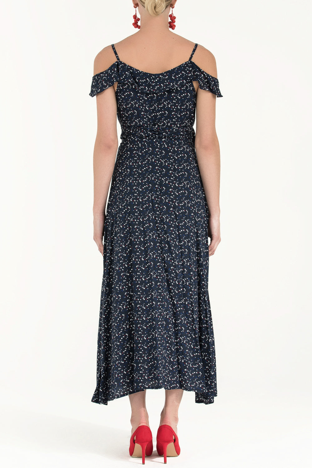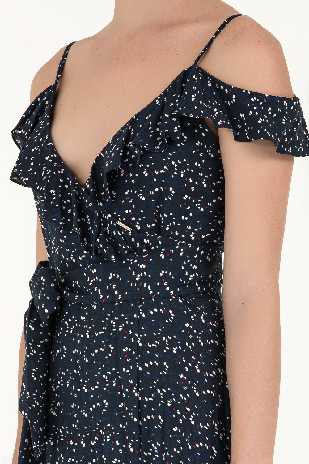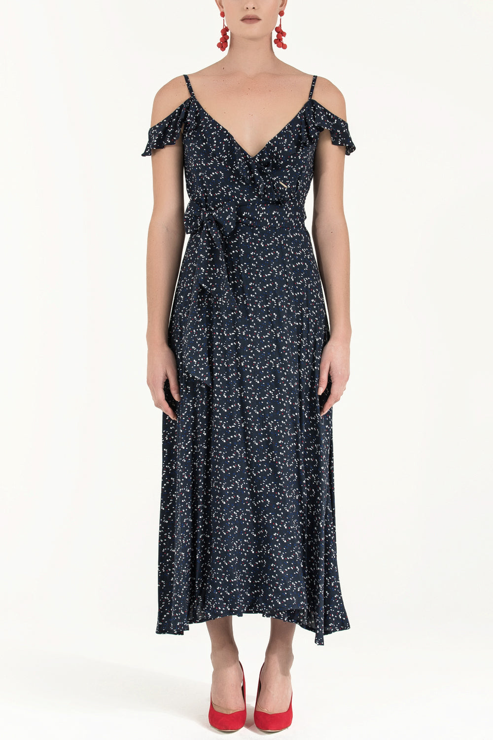 Lacivert Anvelop kapama desenli uzun elbise 92322