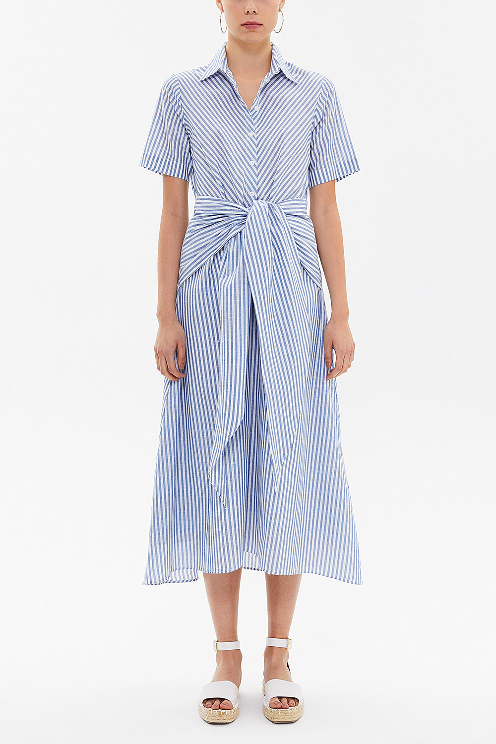 Lacivert Bagcıklı kısa kol midi elbise 92927