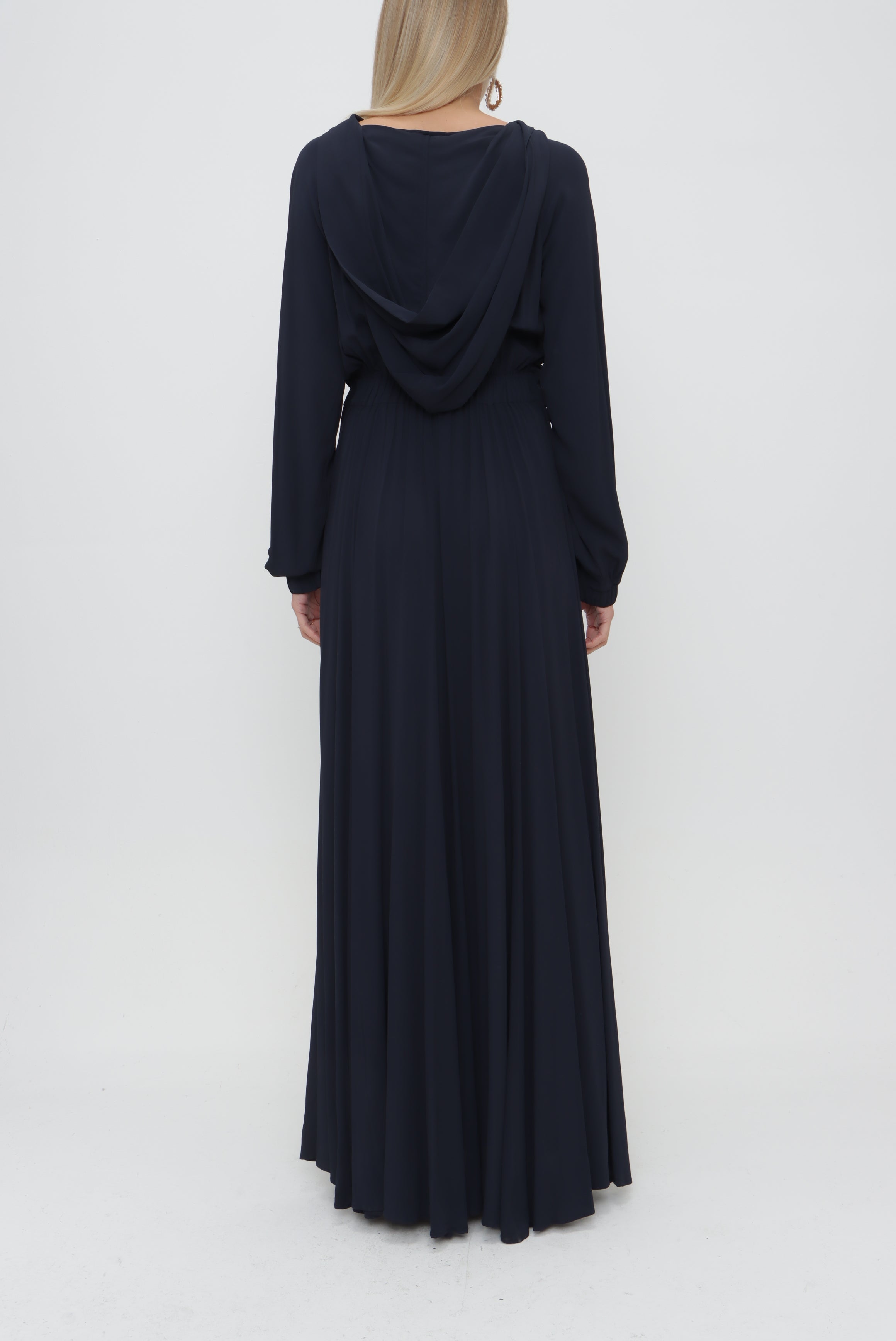 Lacivert Fermuarlı kapüşonlu uzun elbise 93741