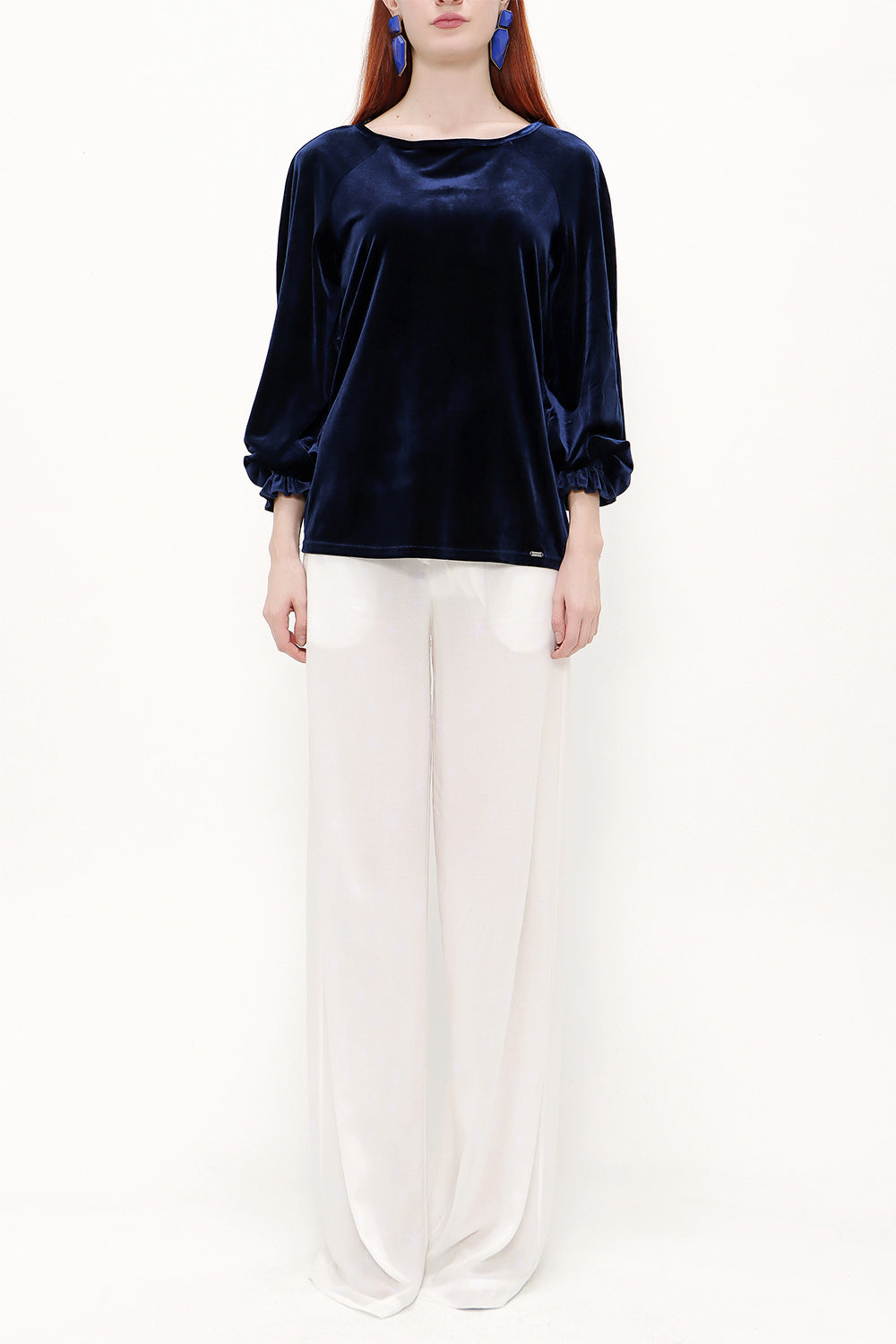 Lacivert Kolları lastikli kadife bluz 19646