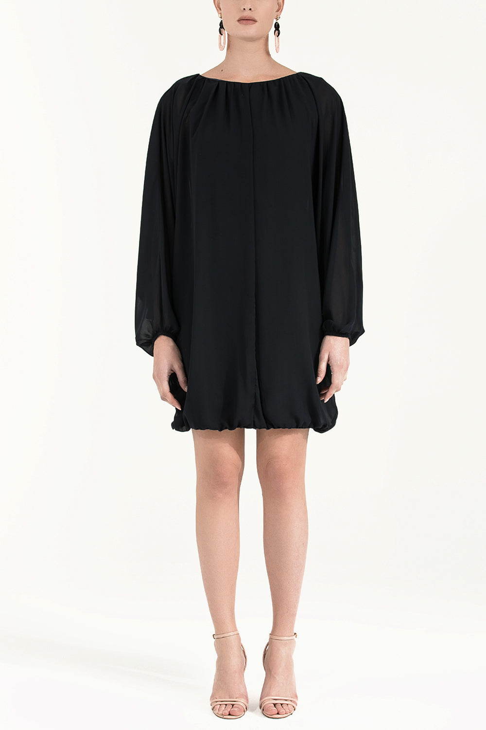 Lacivert Lastikli bol kesim şifon mini elbise 92085