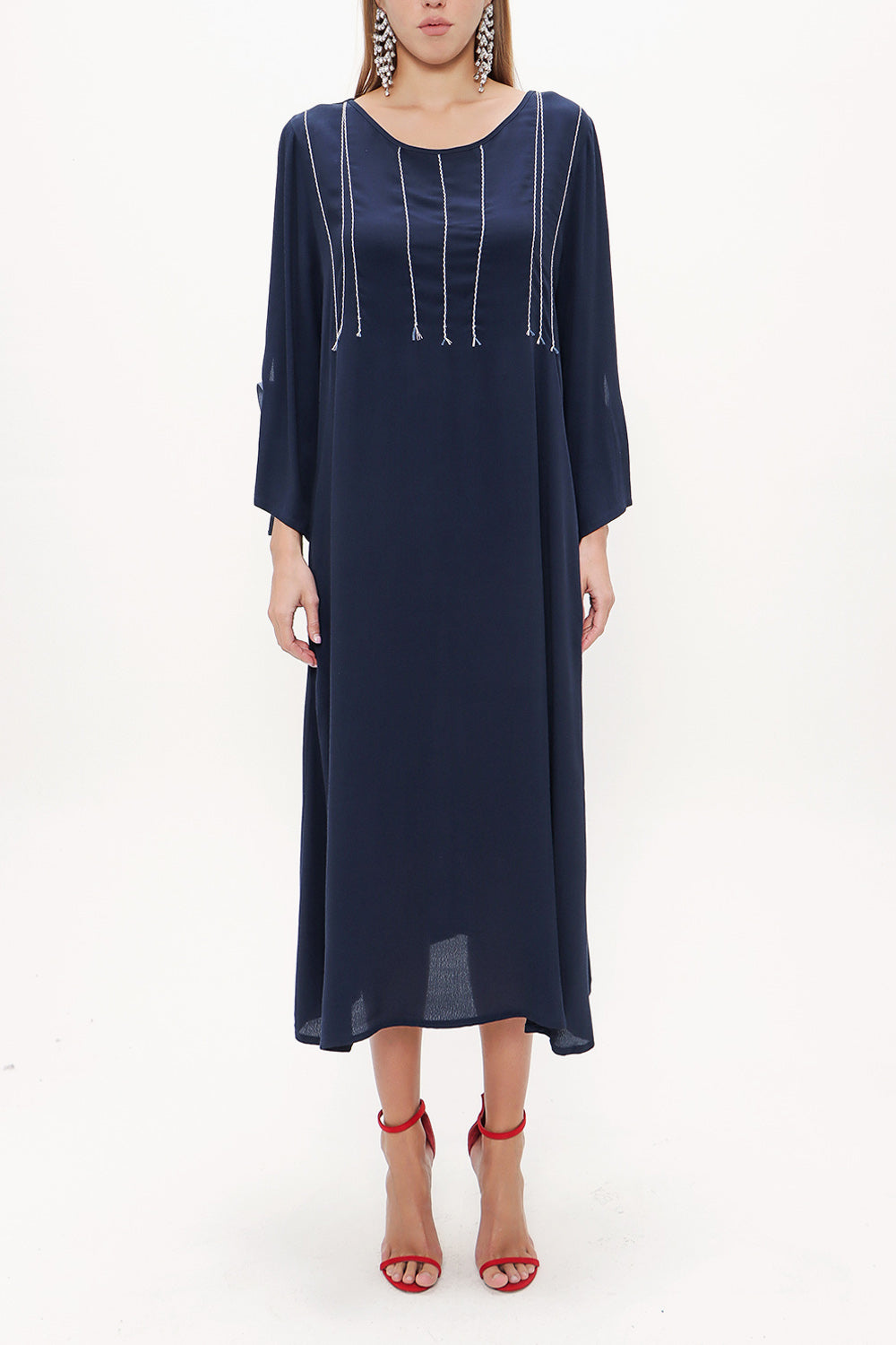 Lacivert Süs dikişli bol kesim midi elbise 92280