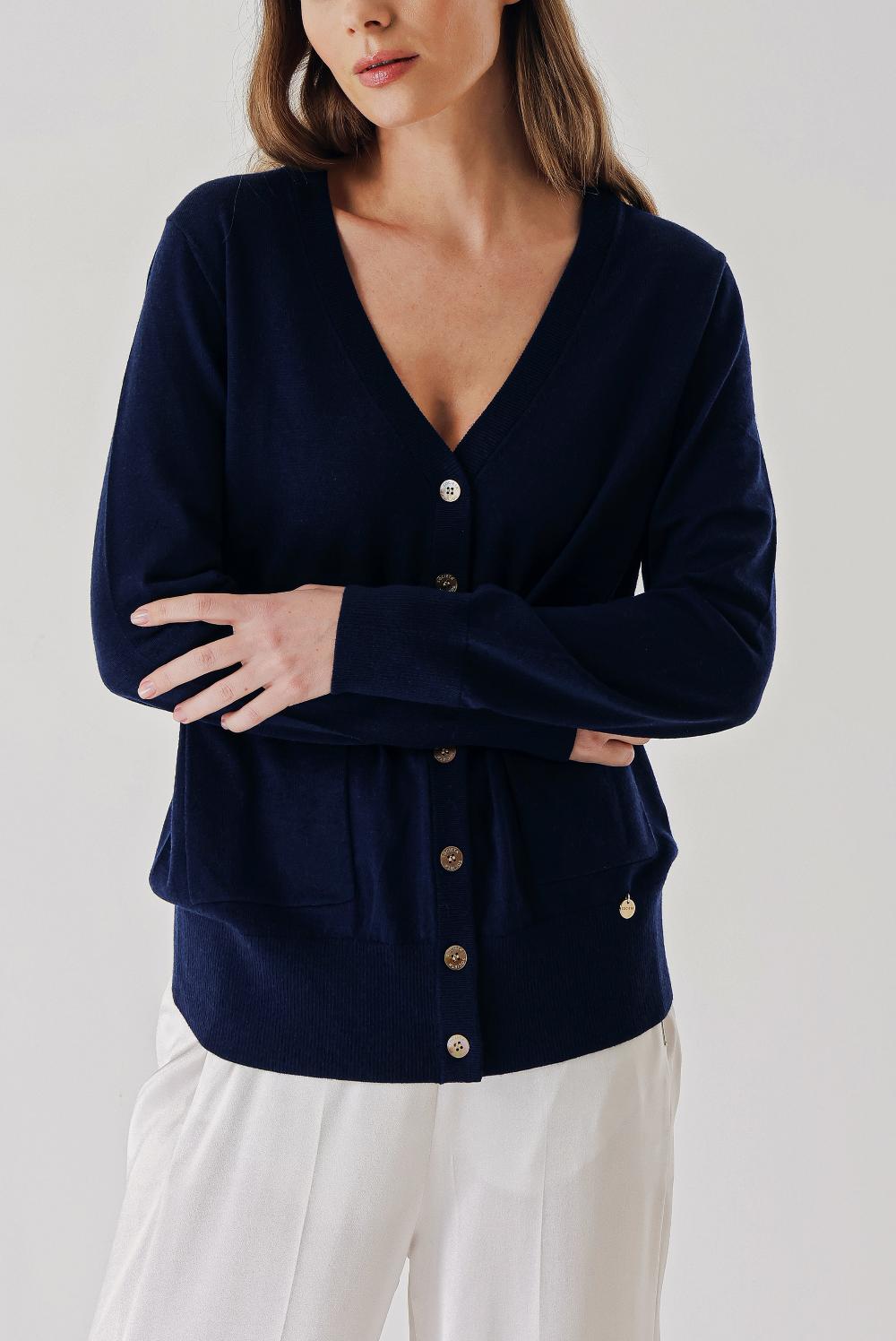 Lacivert V yaka yünlü uzun triko hırka 28867