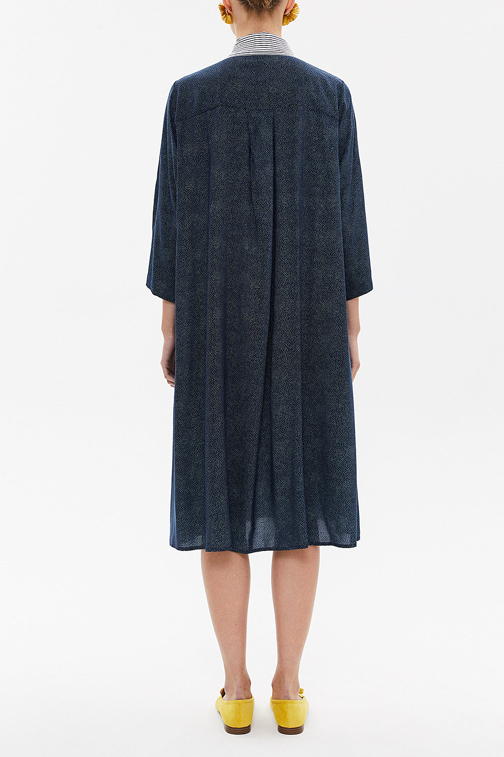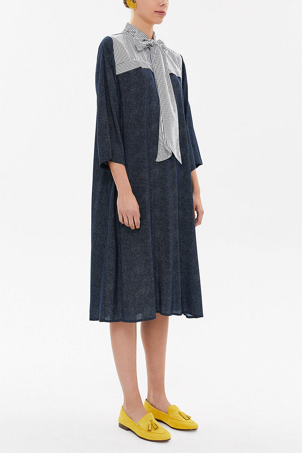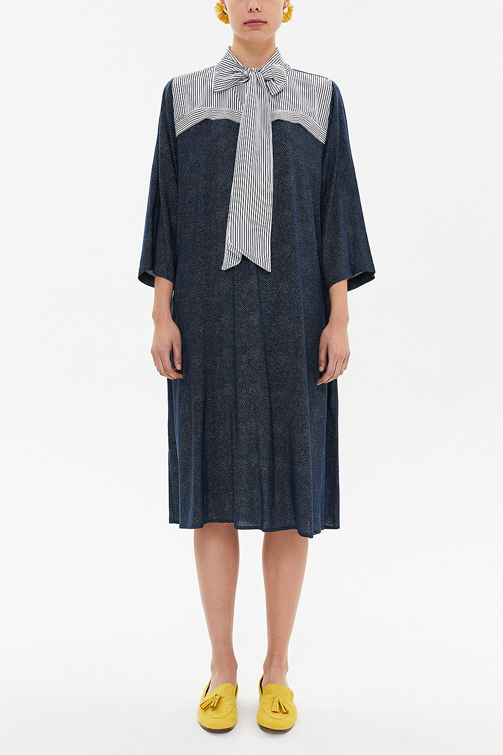 Lacivert Yakası bağcıklı bol kesim midi elbise 92816