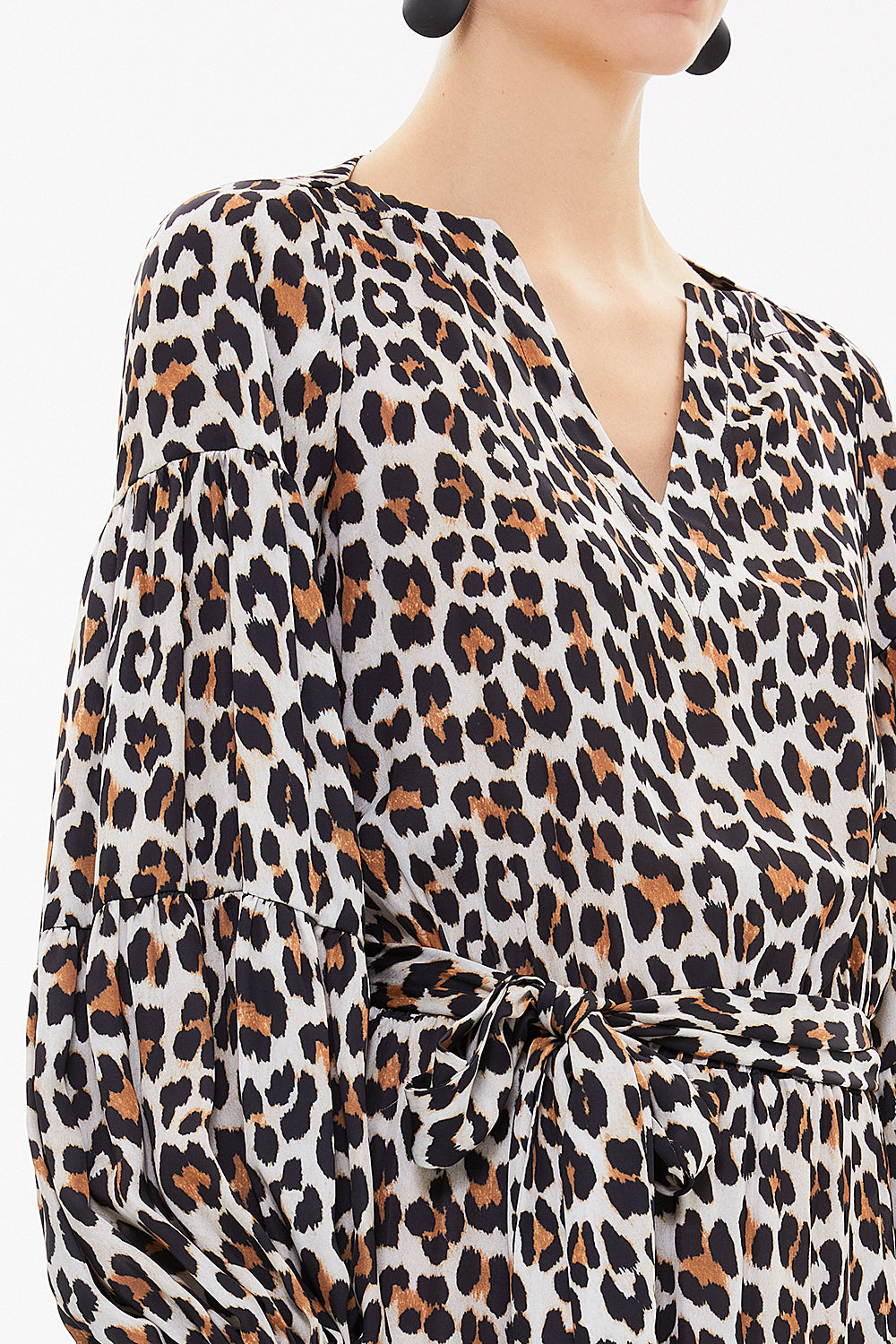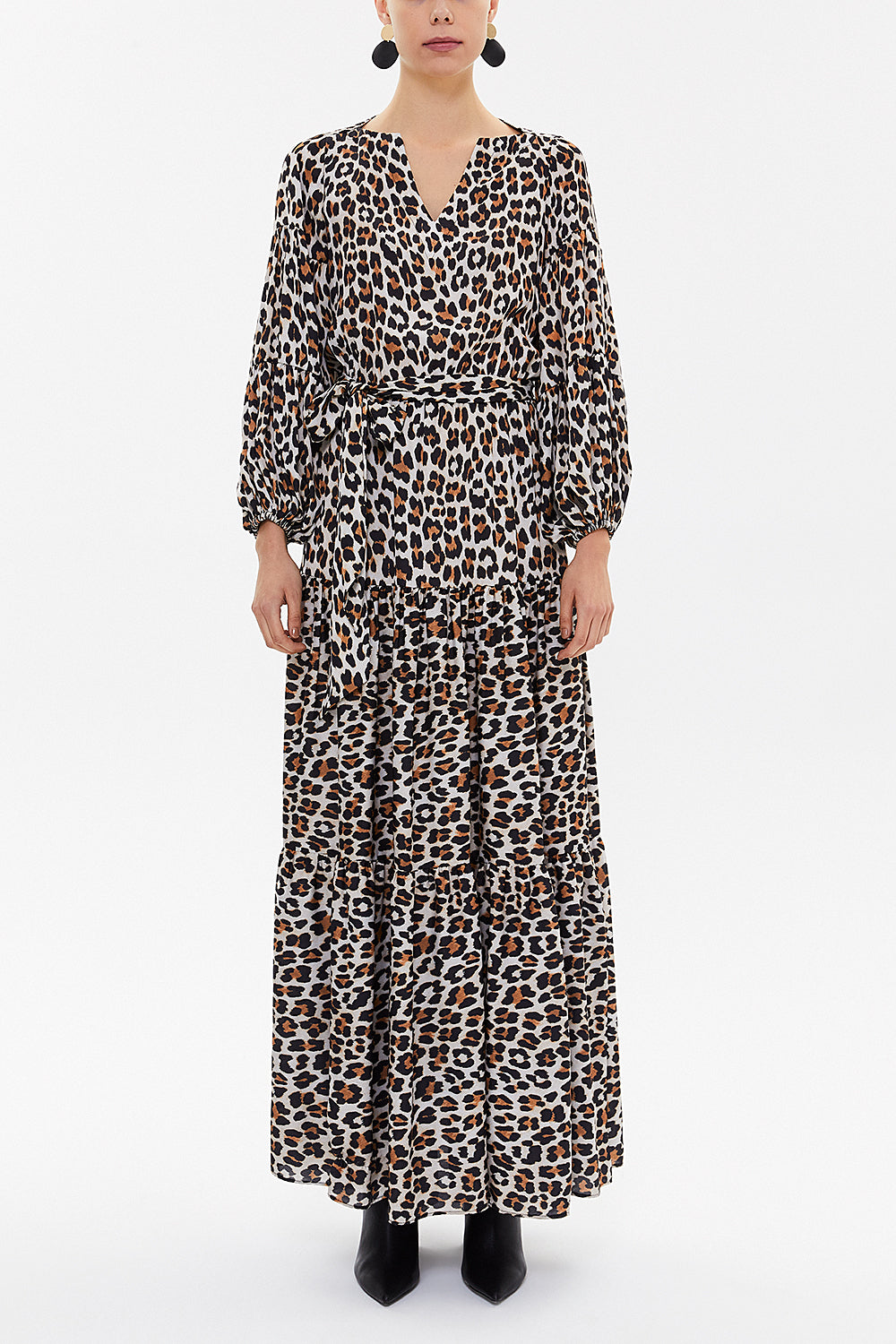 Leopar Volanlı kol kemerli uzun elbise 92633