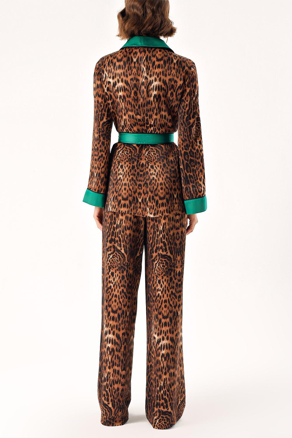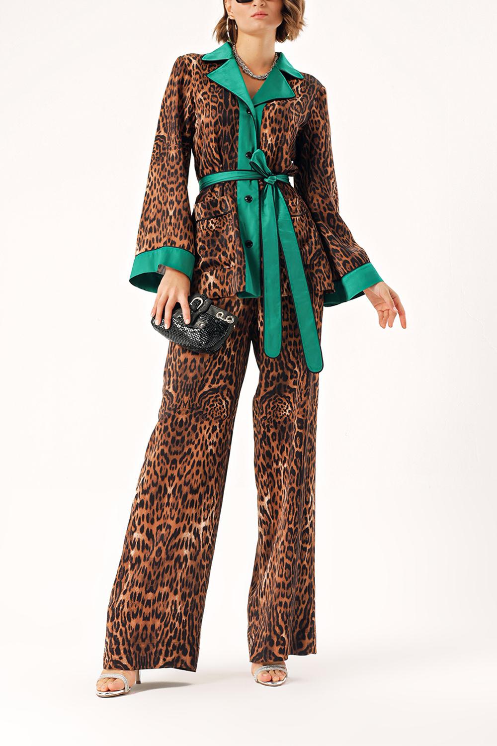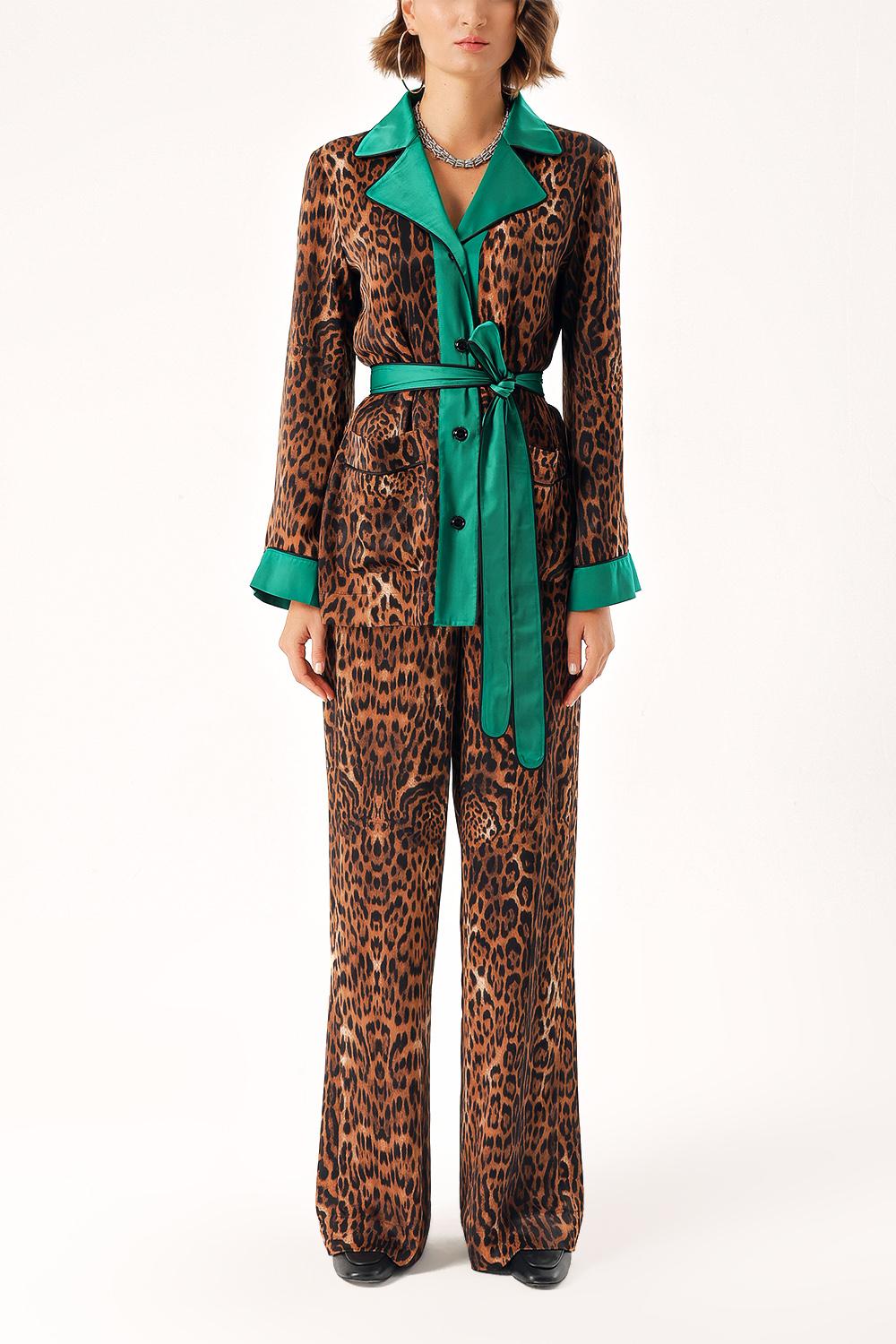 Leopar-Yeşil Beli lastik kemer pantolonlu ikili takım 12314