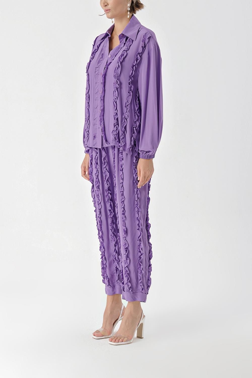 Lila Fırfır detaylı pantolon ve gömlekli takım 12312