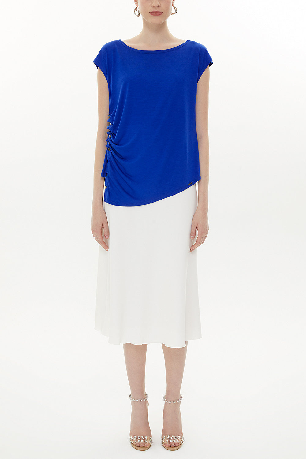 Mavi Çıtçıt detaylı salaş bluz 19817