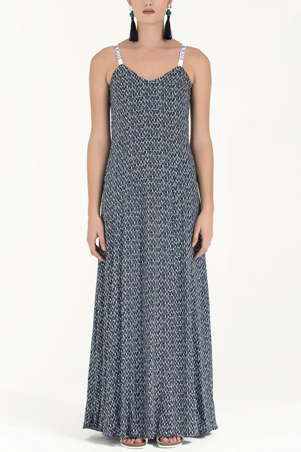 Mavi Kristal taşlı kolsuz uzun elbise 92337