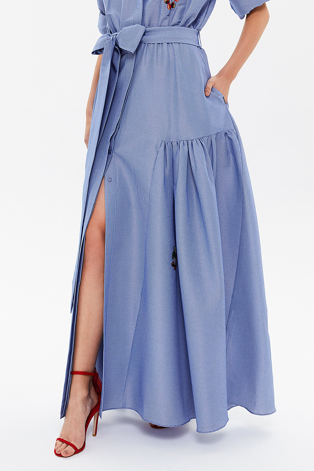 Mavi Nakışlı uzun elbise 92866