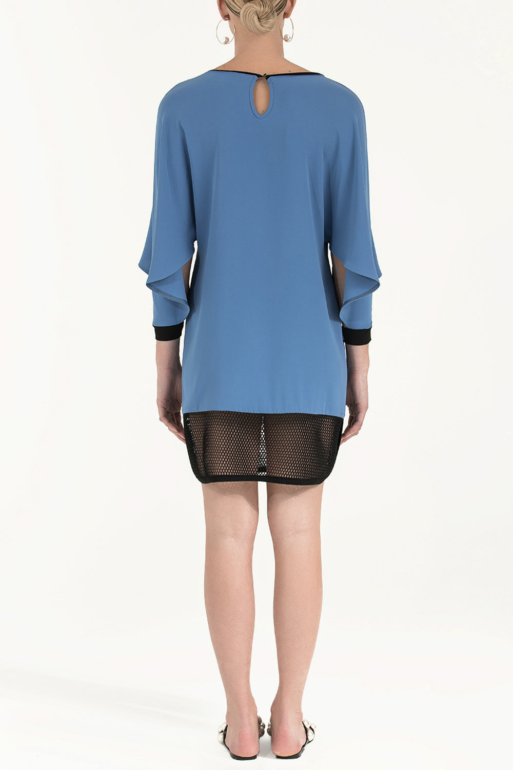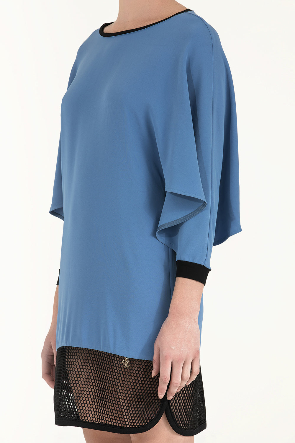 Mavi Siyah File kumaş mixli baskılı mini elbise 91436