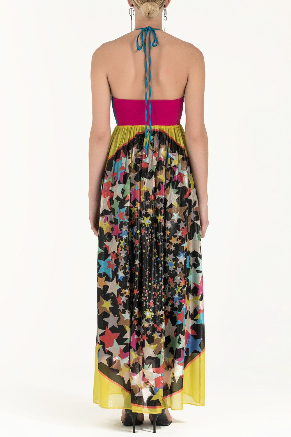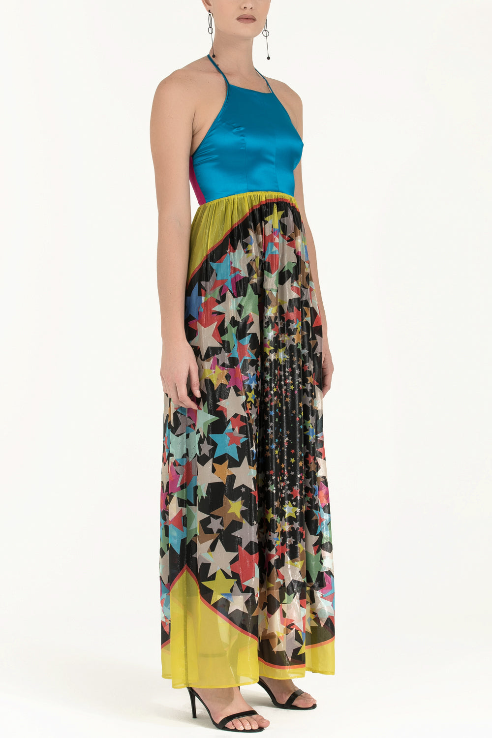 Mavi Yıldız desenli ipek uzun elbise 92106