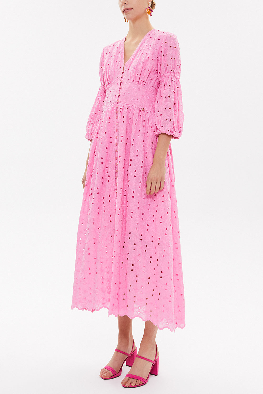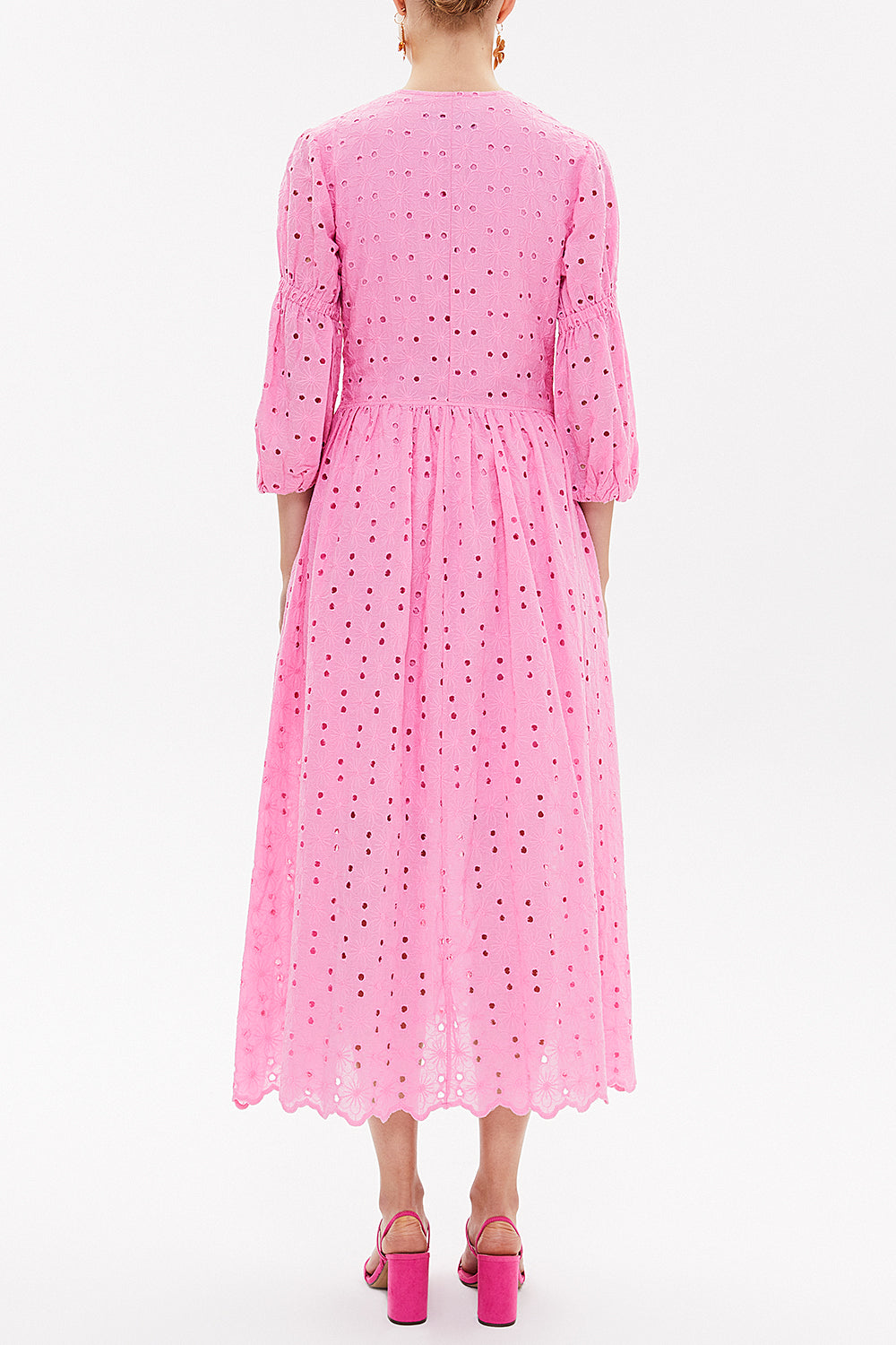 Pembe Bordeli balon kollu uzun elbise 92770