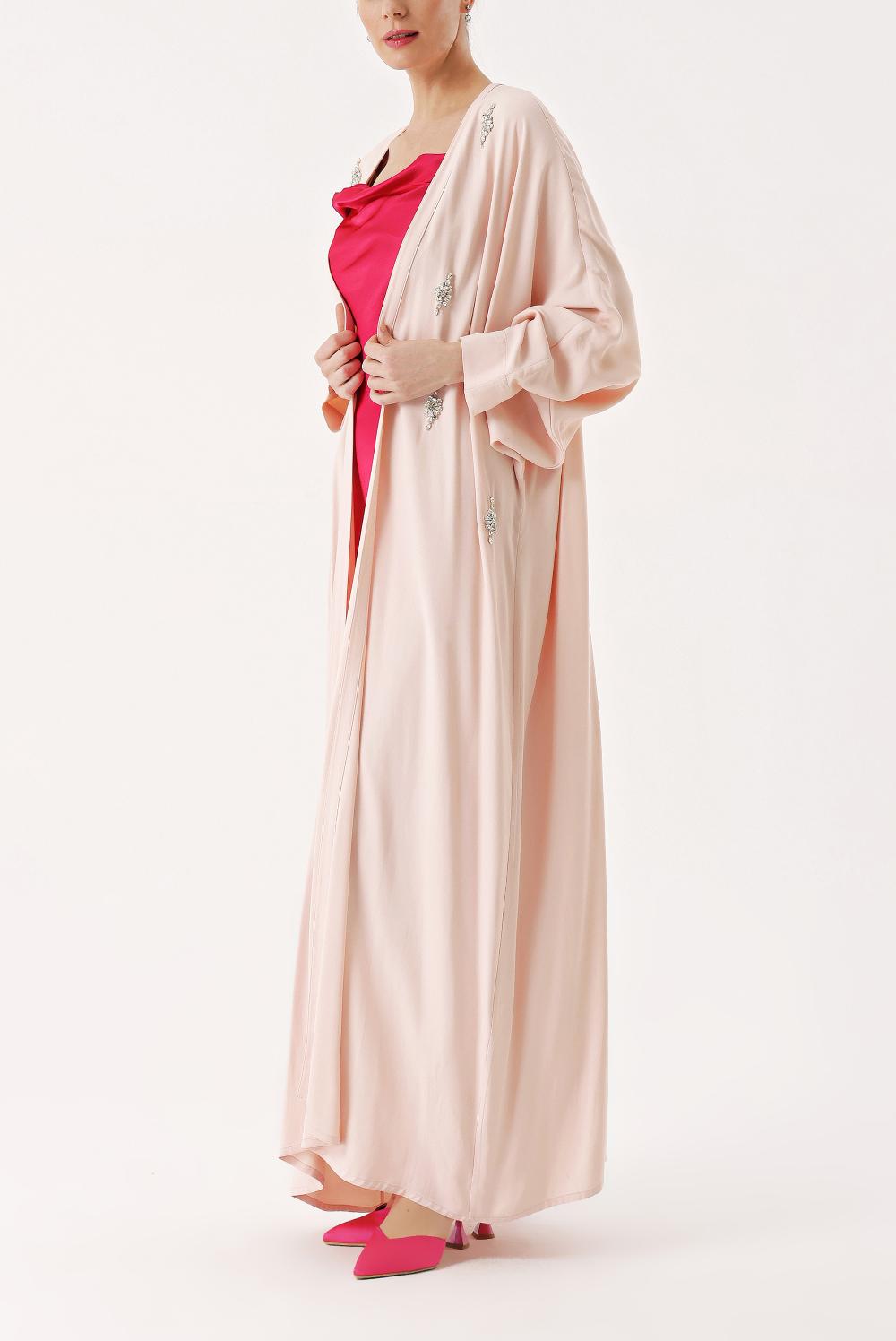 Pembe Taş işlemeli uzun kollu kaftan 94467