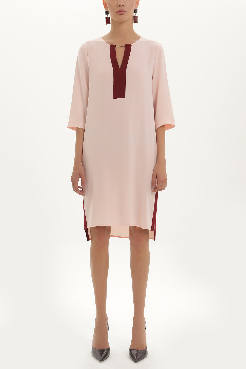 Pembe Yakası aksesuarlı bol kesim midi elbise 91428