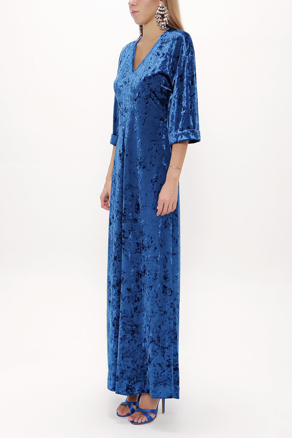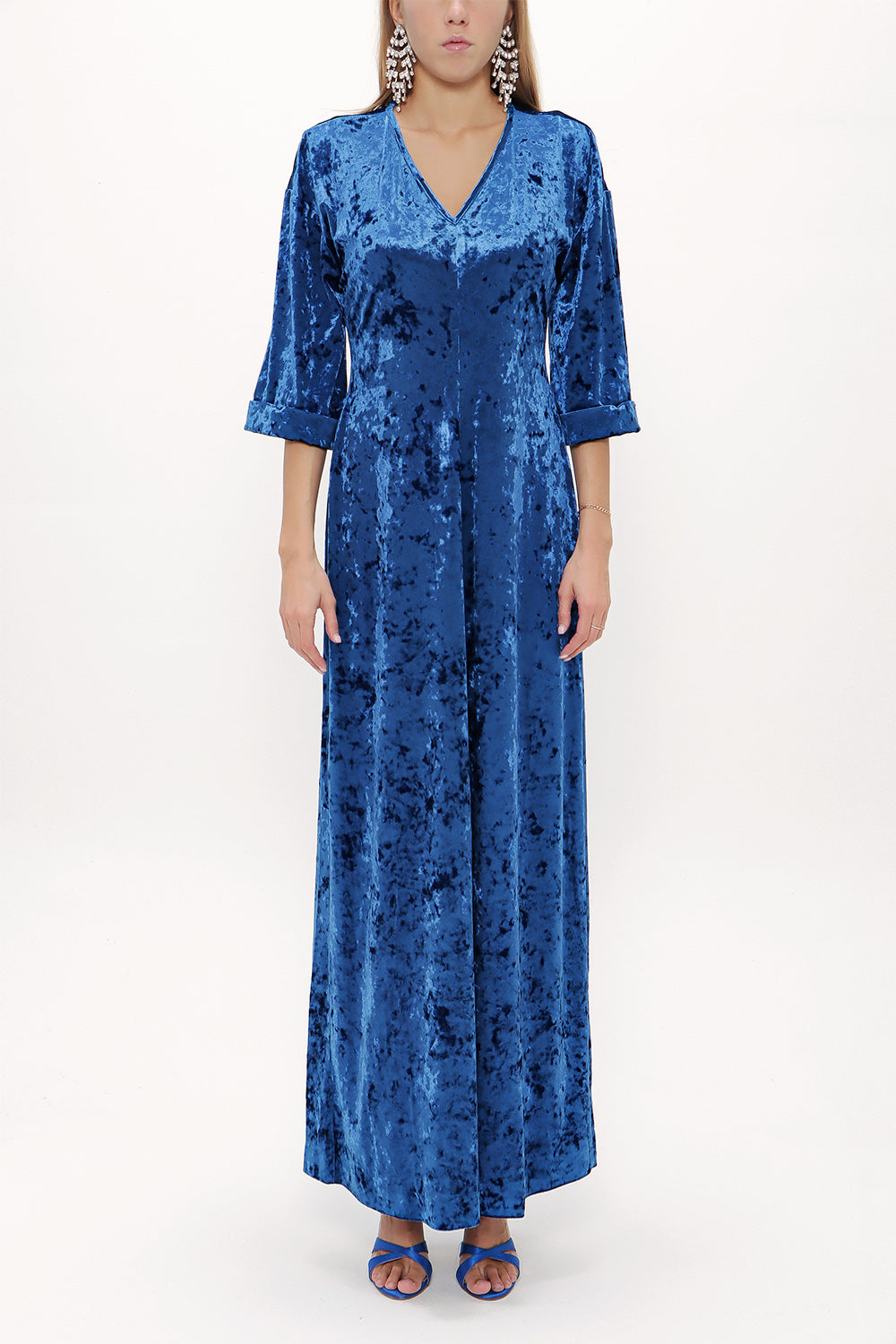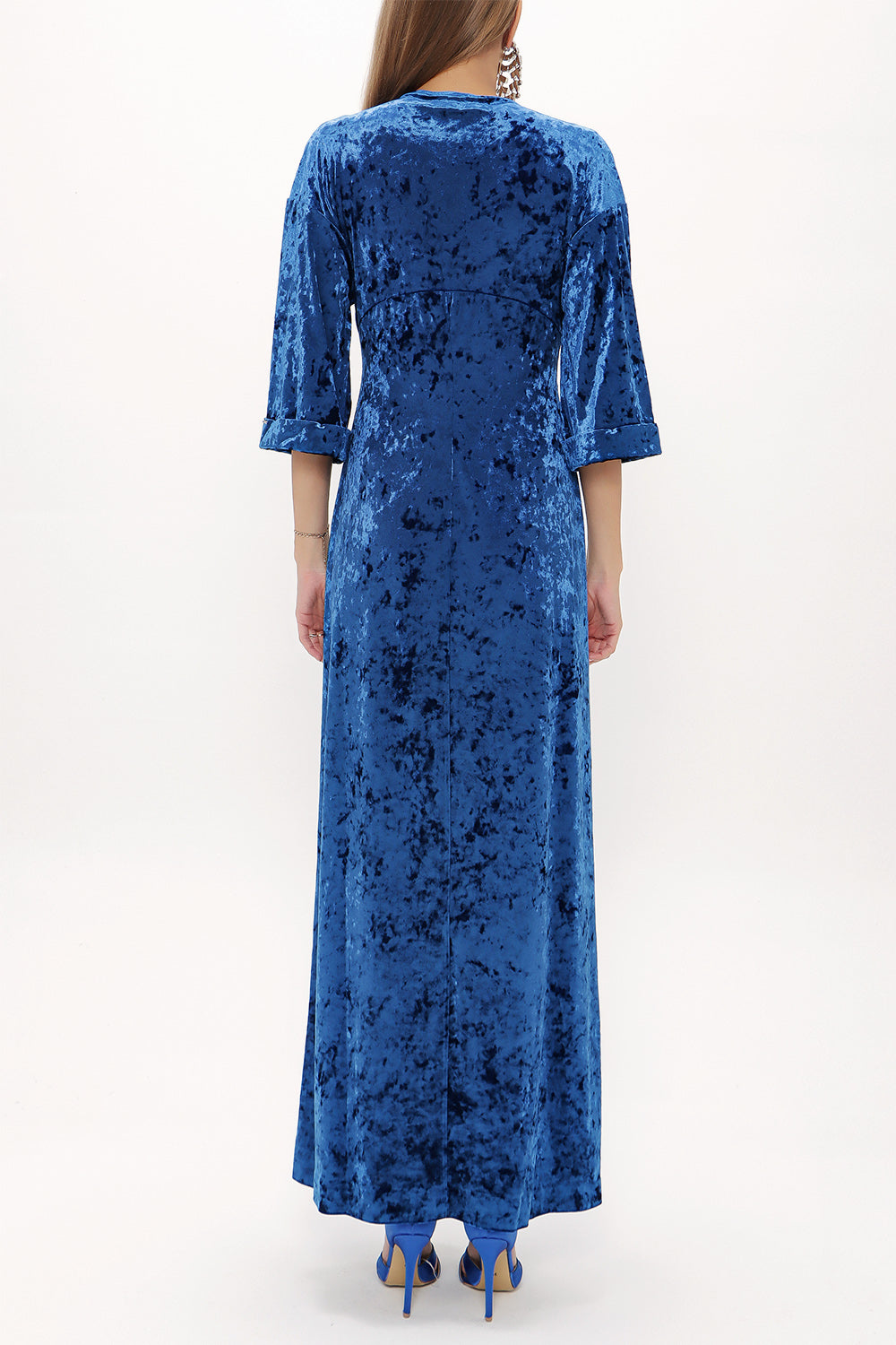 Petrol Kadife uzun elbise 92153