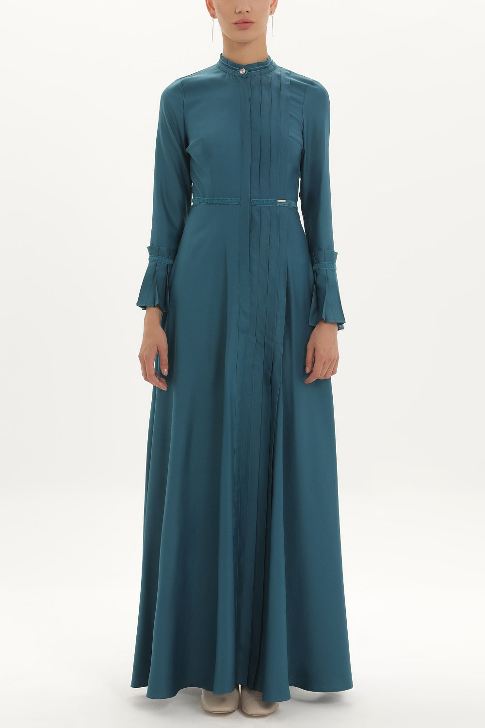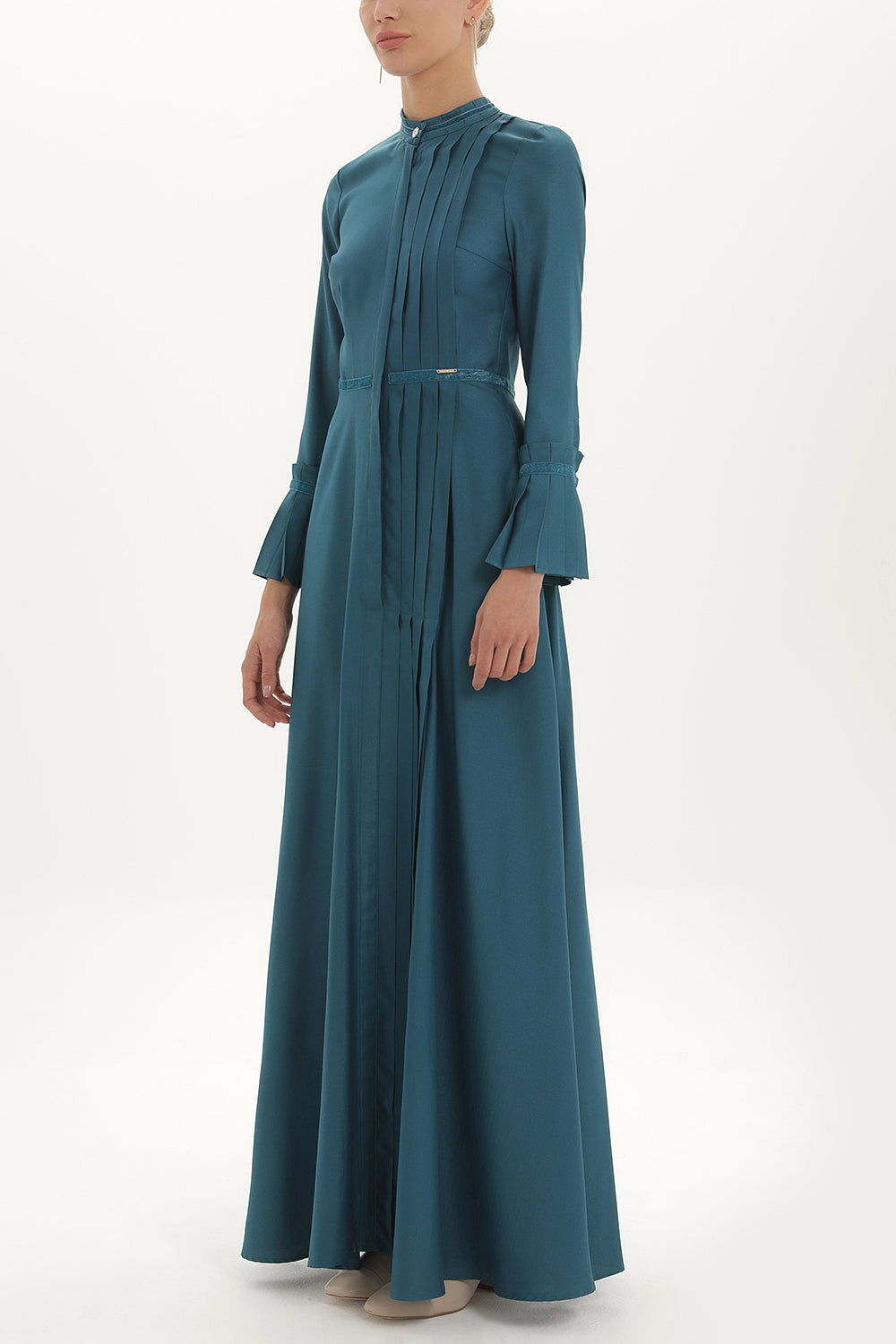 Petrol Pilise detaylı belden oturtmalı uzun elbise 92196