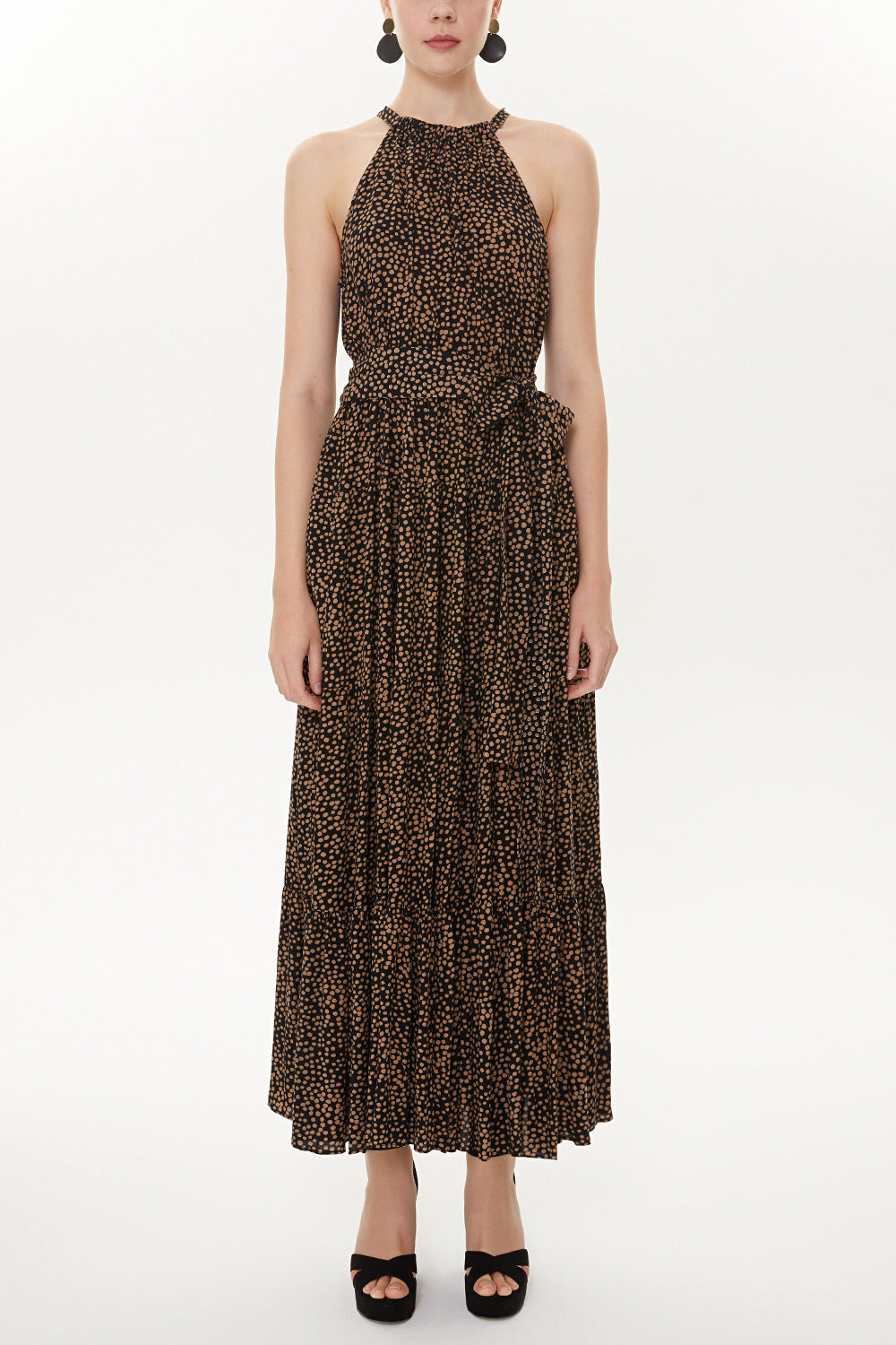 Puantiyeli Askılı sıfır kol bol kesim elbise 93470