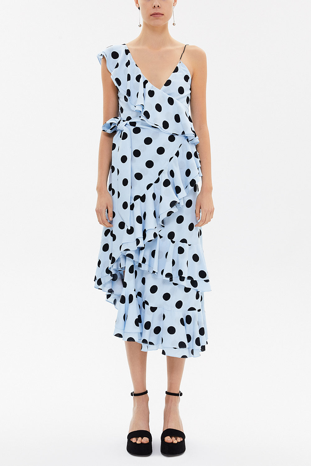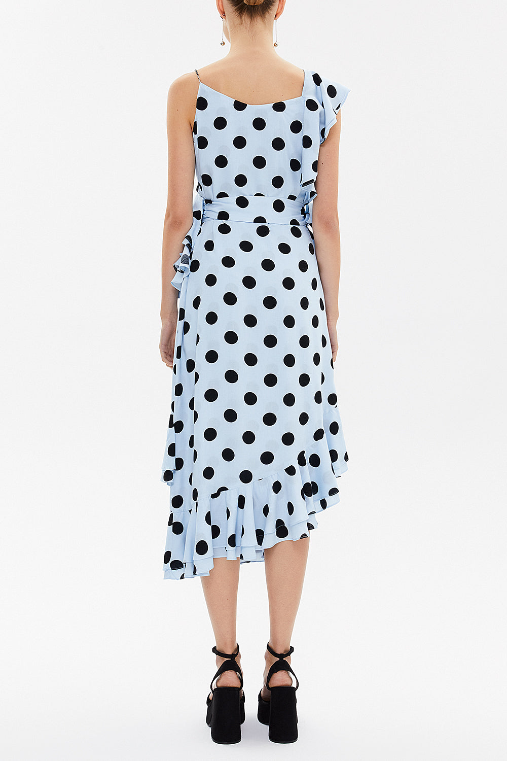 Puantiyeli Fırfır detaylı desenli midi elbise 92774