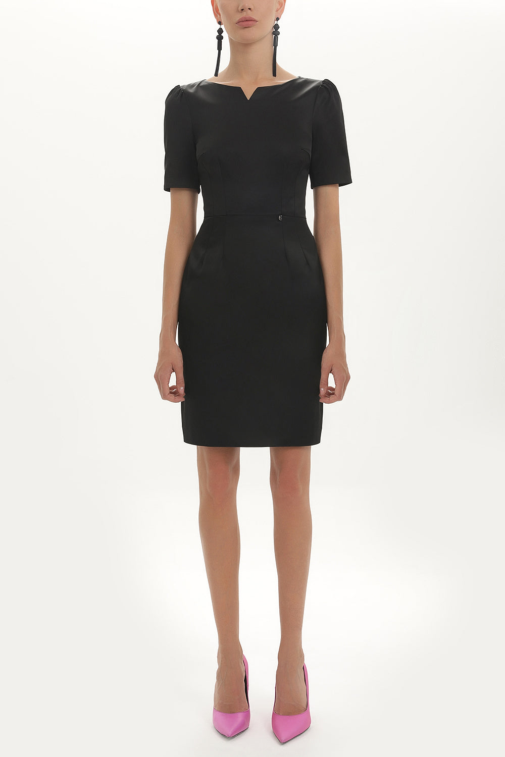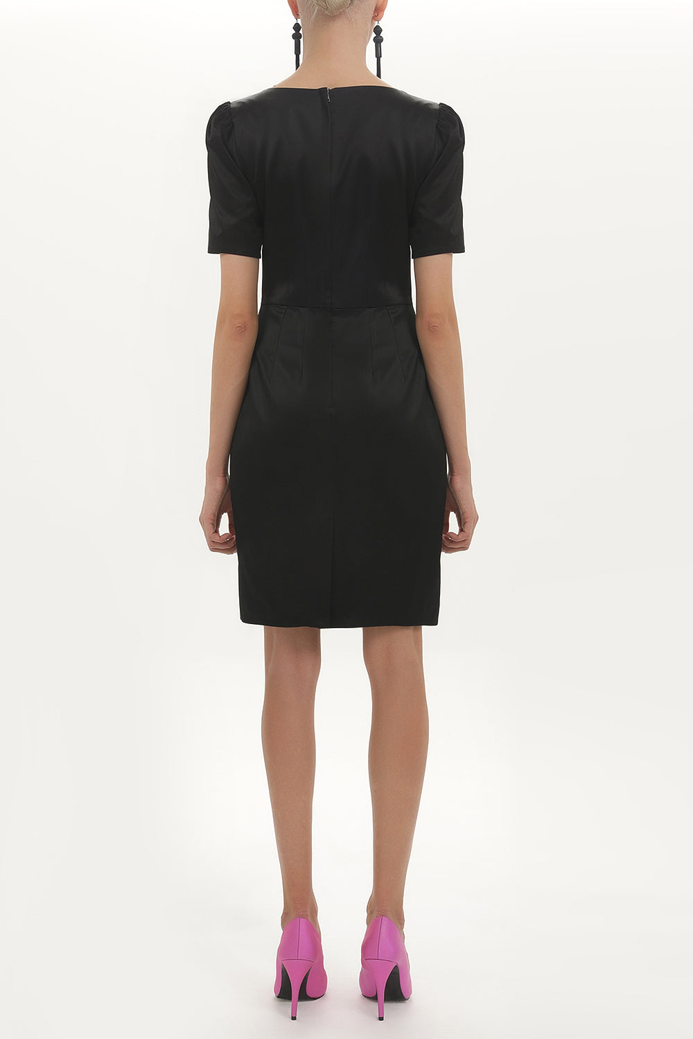 Puantiyeli Jakarlı kolları büzgülü mini elbise 91437