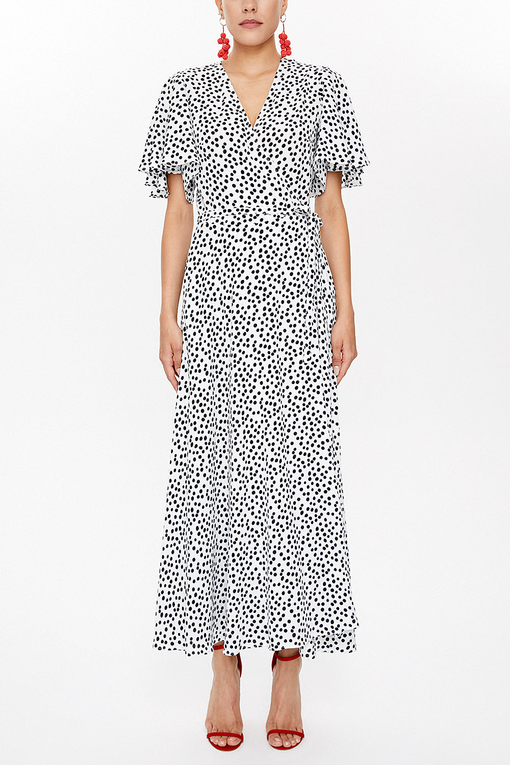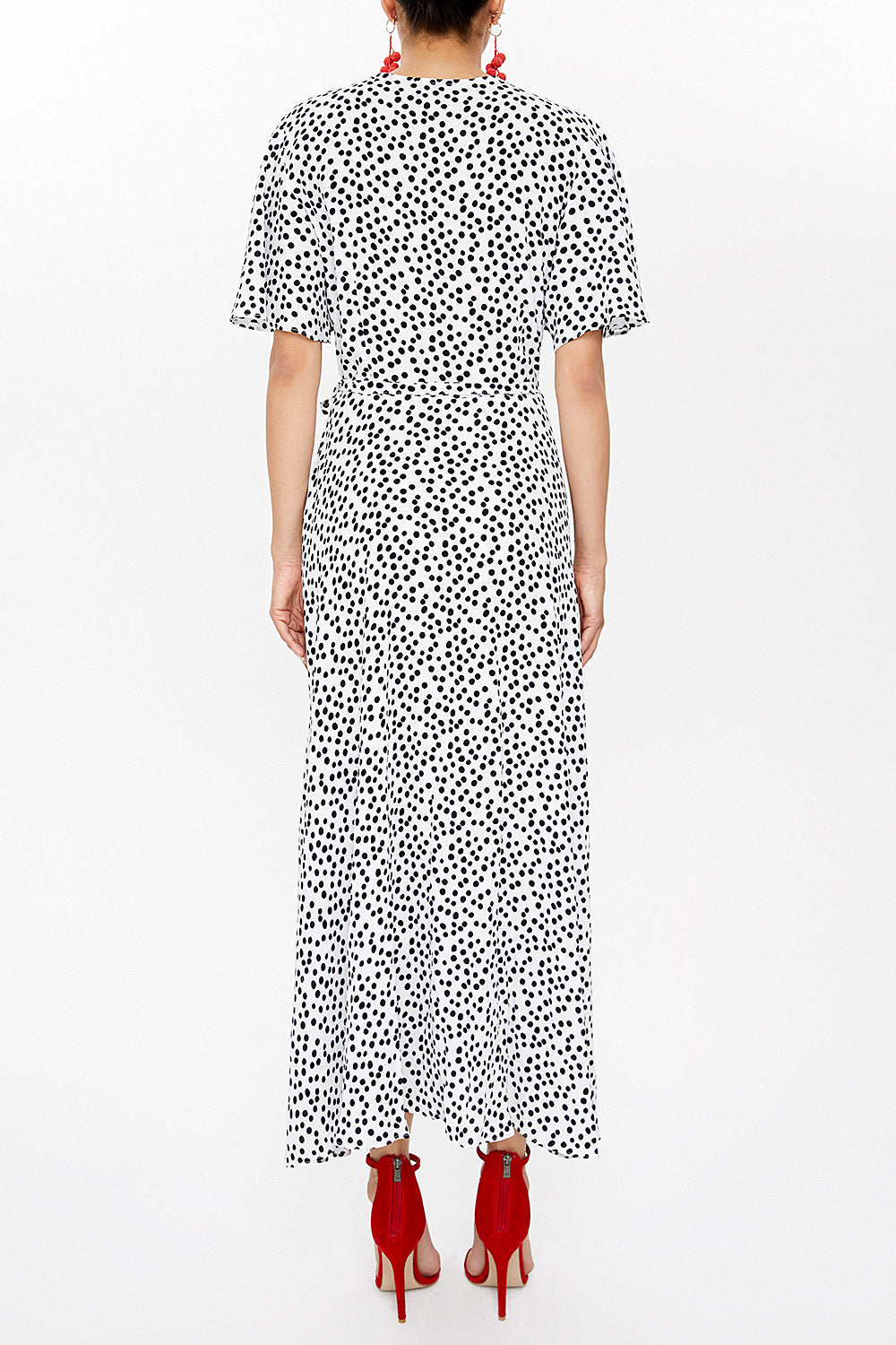 Puantiyeli V yaka anvelop uzun elbise 93207