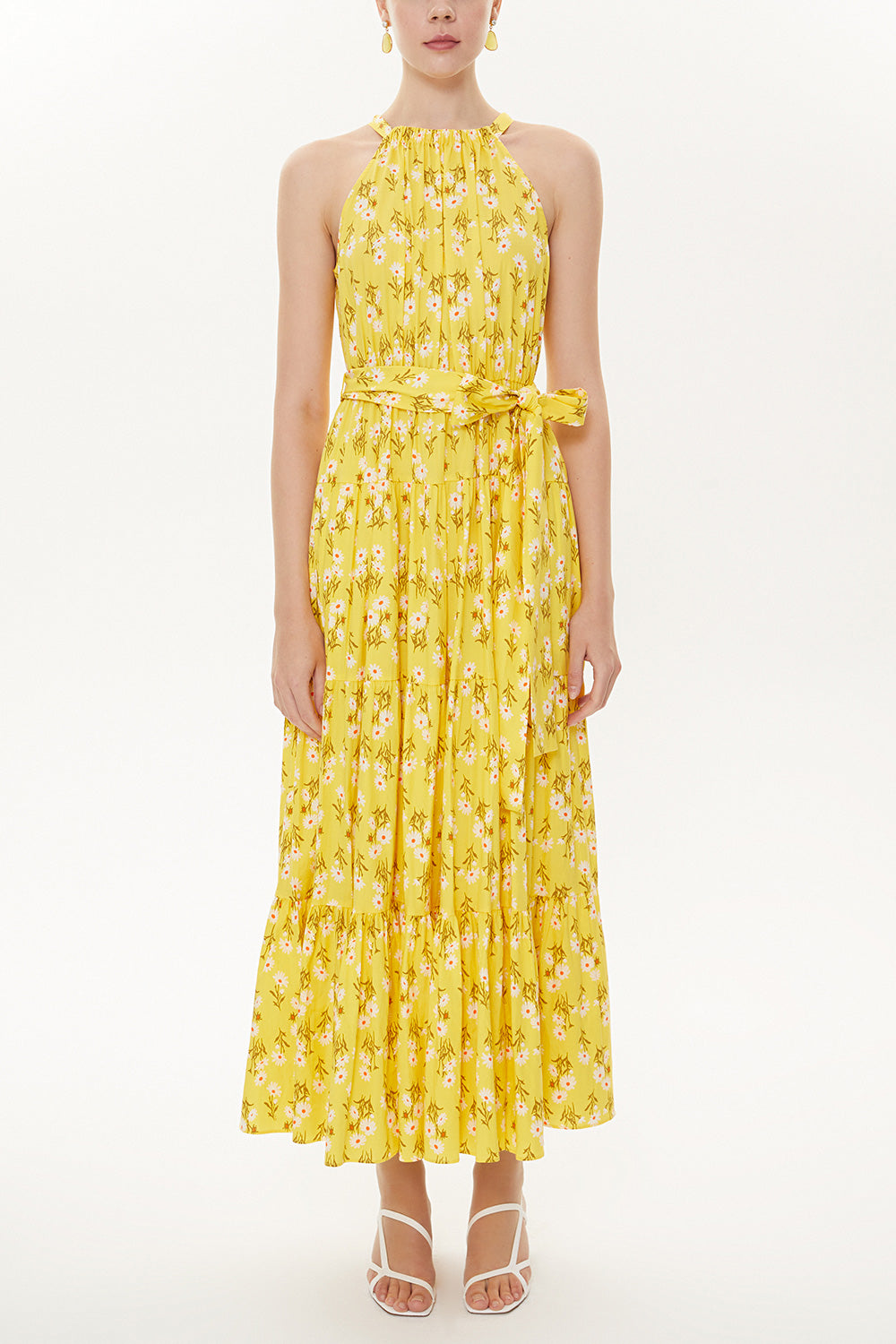 Sarı Askılı sıfır kol bol kesim elbise 93470