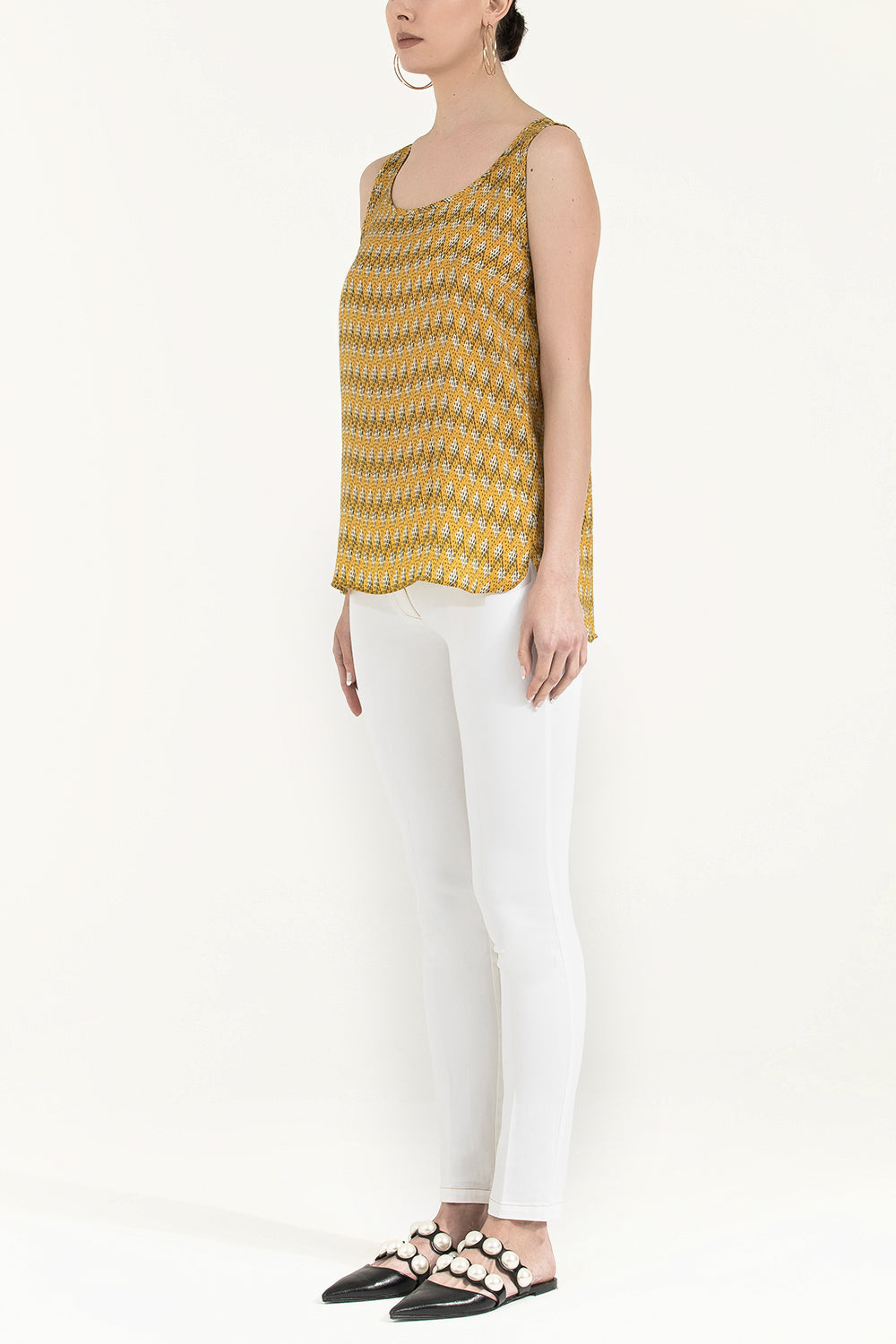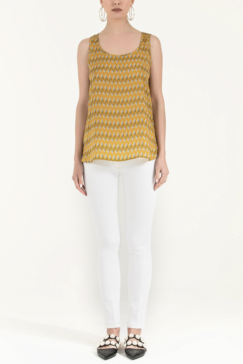 Sarı Desenli kolsuz bluz 19561