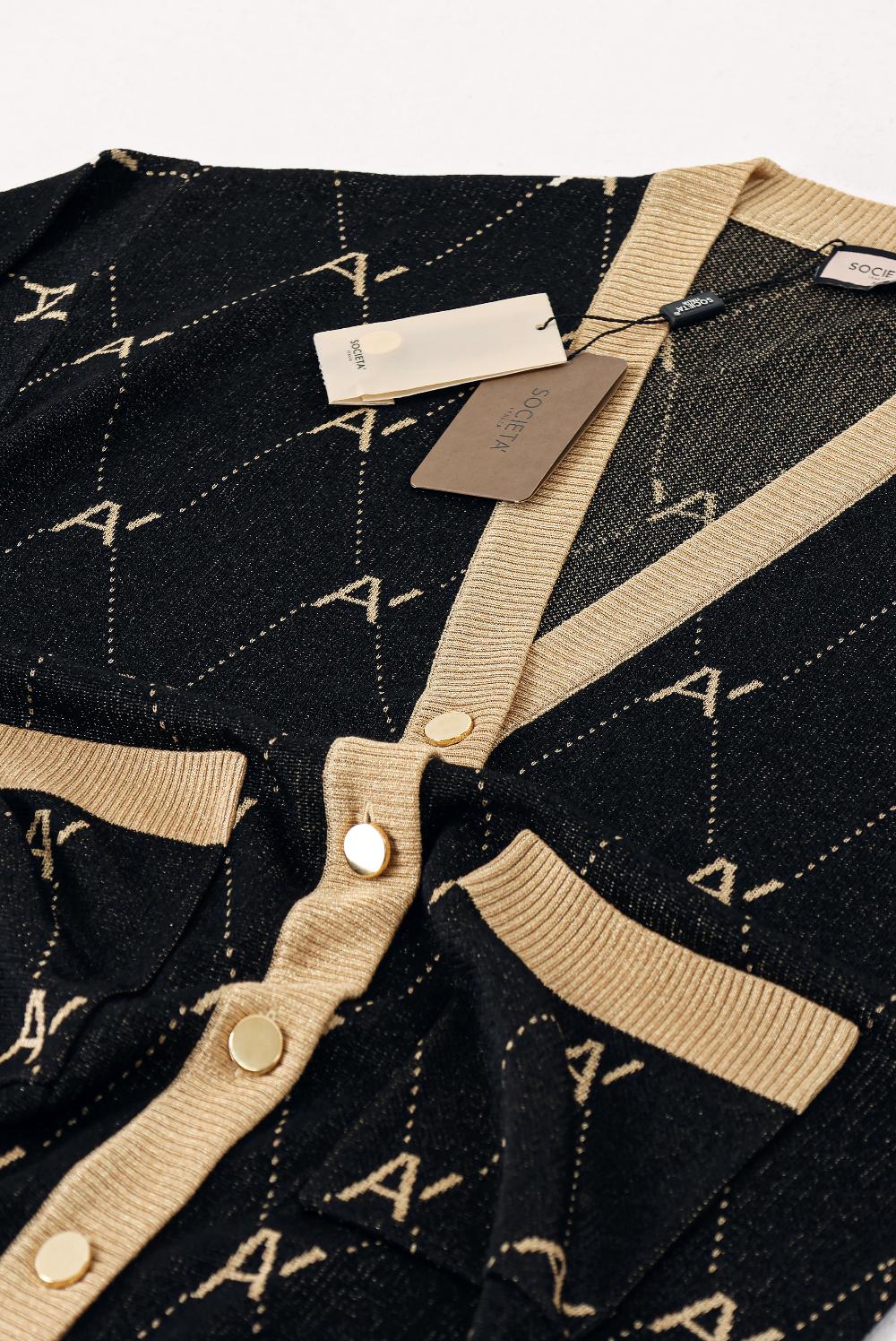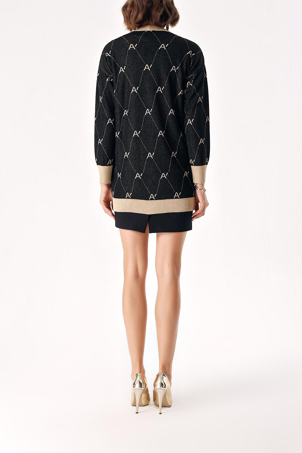 Siyah Altın Kısa kollu bluz ve uzun parlak hırka ikili takım 28856