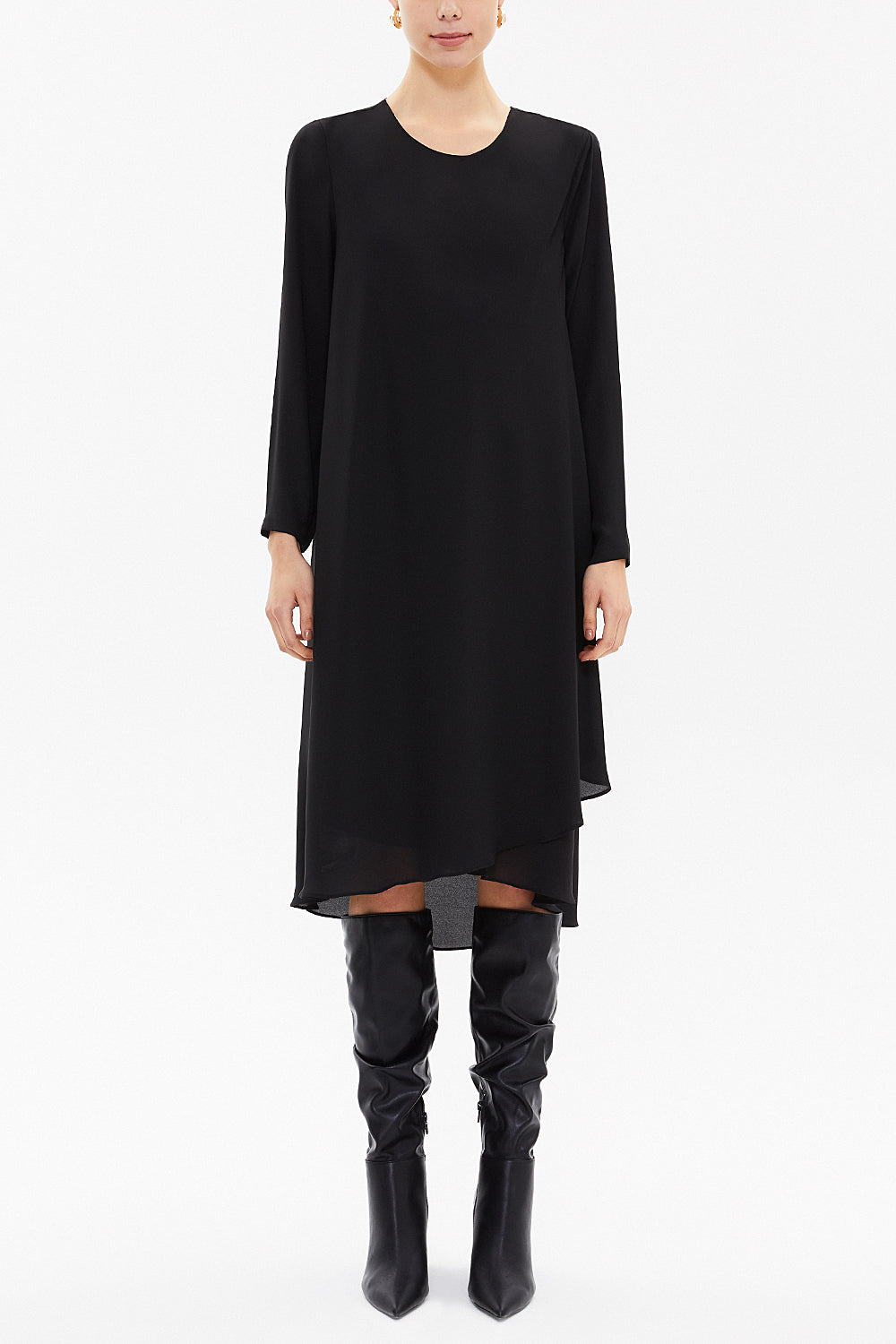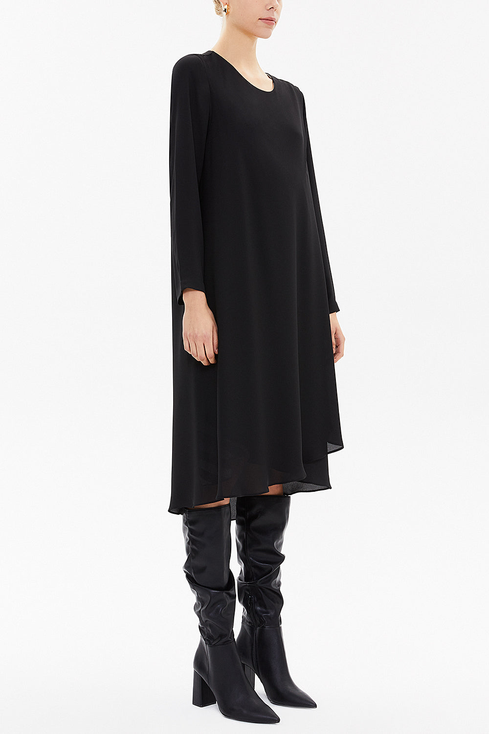 Siyah Asimetrik kesim şifon midi elbise 92549
