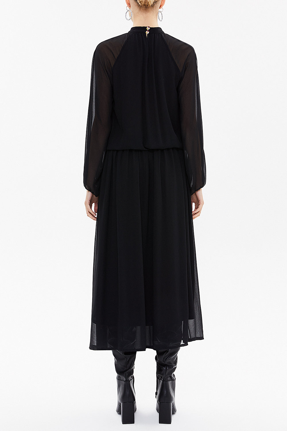 Siyah Balıkçı yaka büzgülü şifon midi elbise 92213