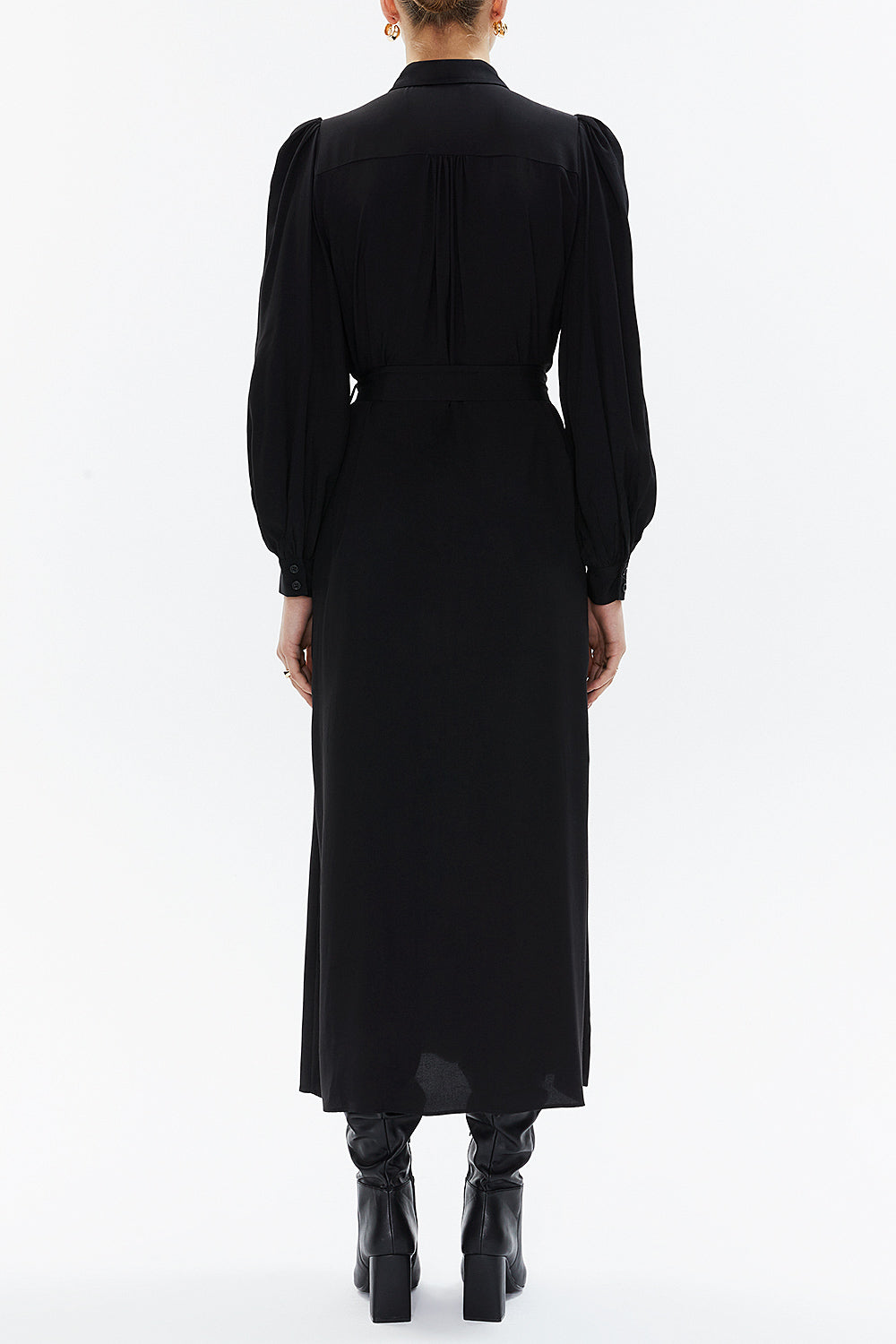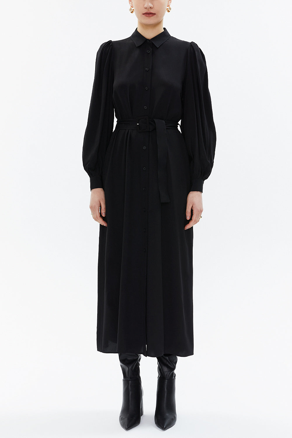 Siyah Balon kol midi elbise 93340