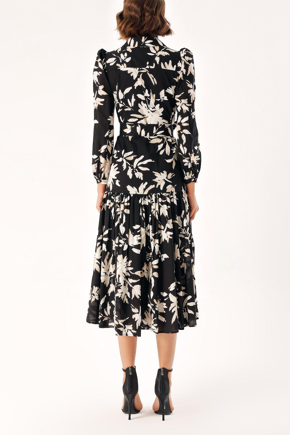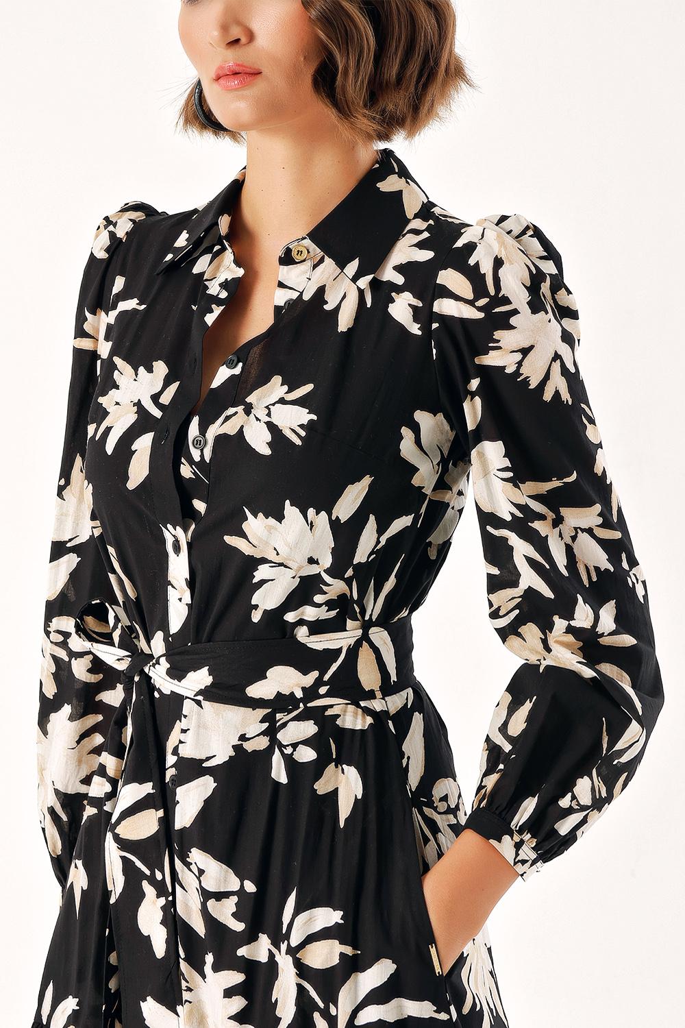 Siyah Bej Büzgülü uzun elbise 94255