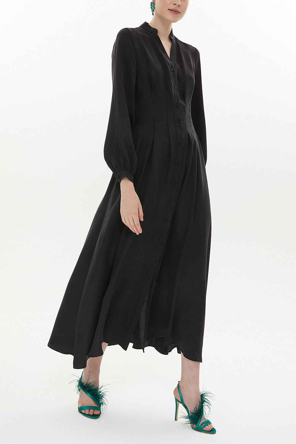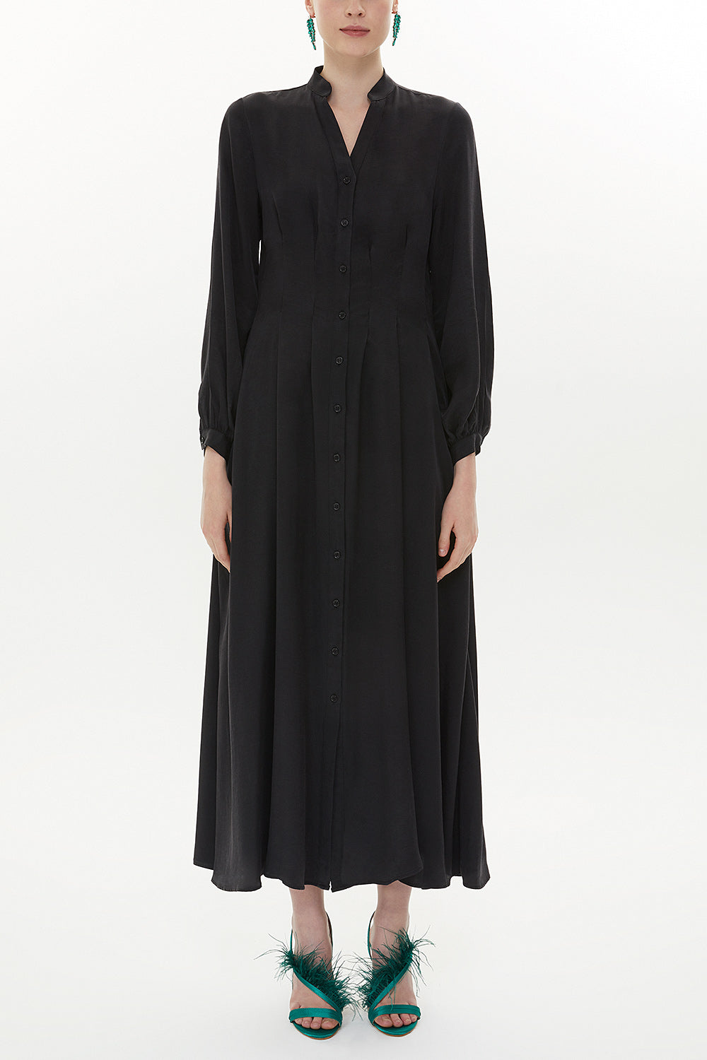Siyah Beli dikiş detaylı uzun elbise 93367