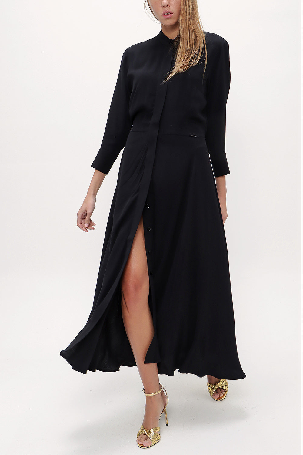 Siyah Beli lastikli midi elbise 92957