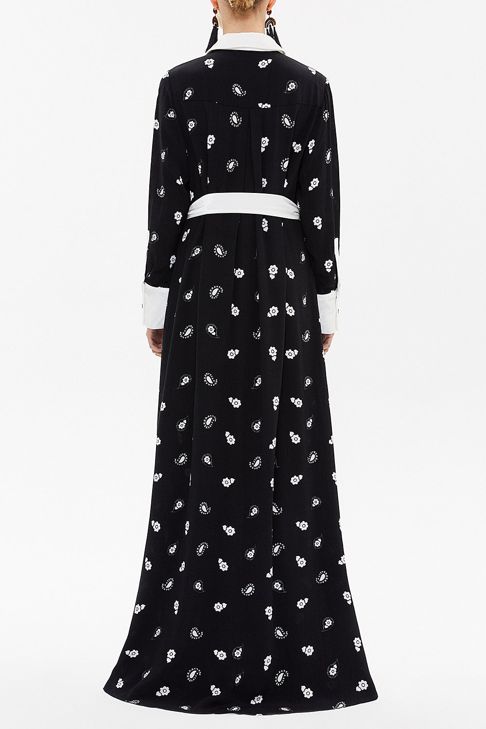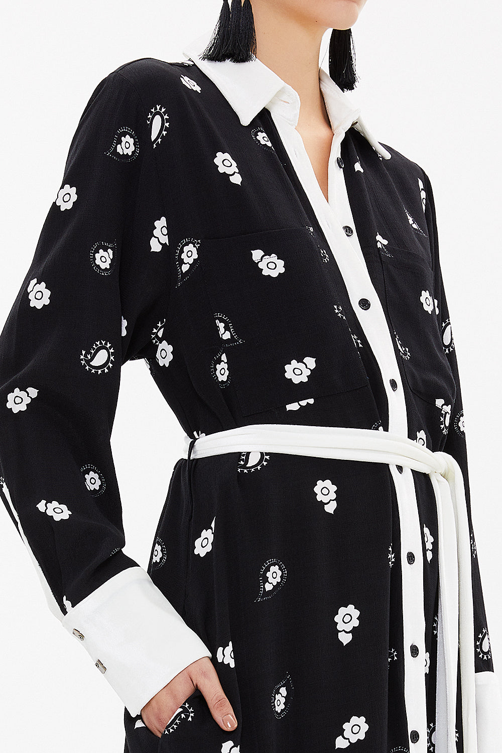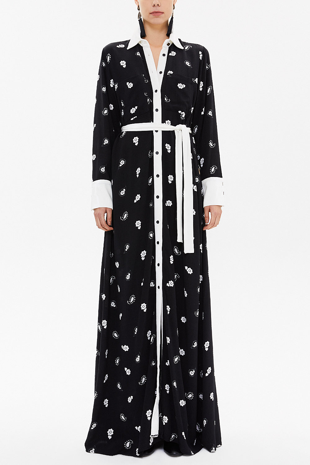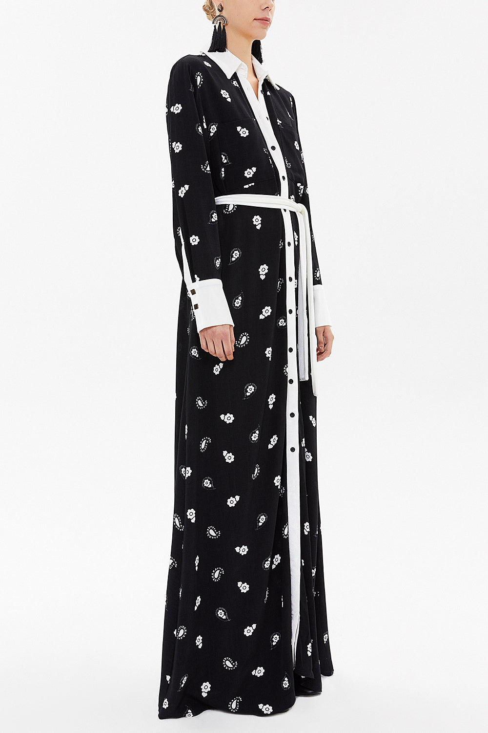 Siyah Beyaz Kadife karışımlı bol kesim uzun elbise 92568