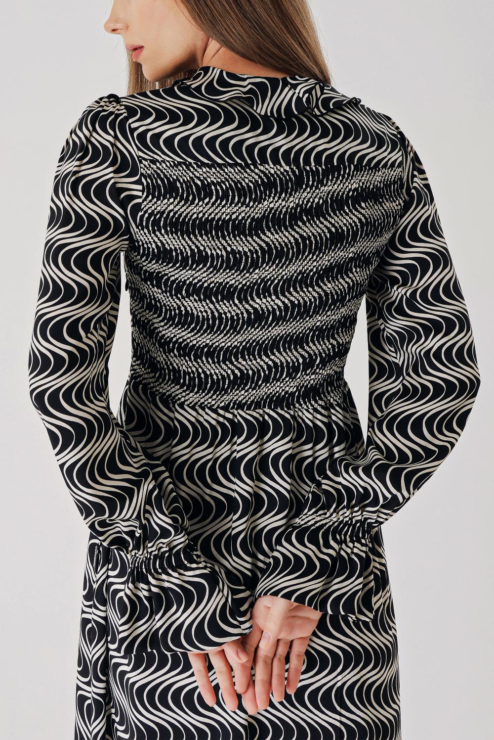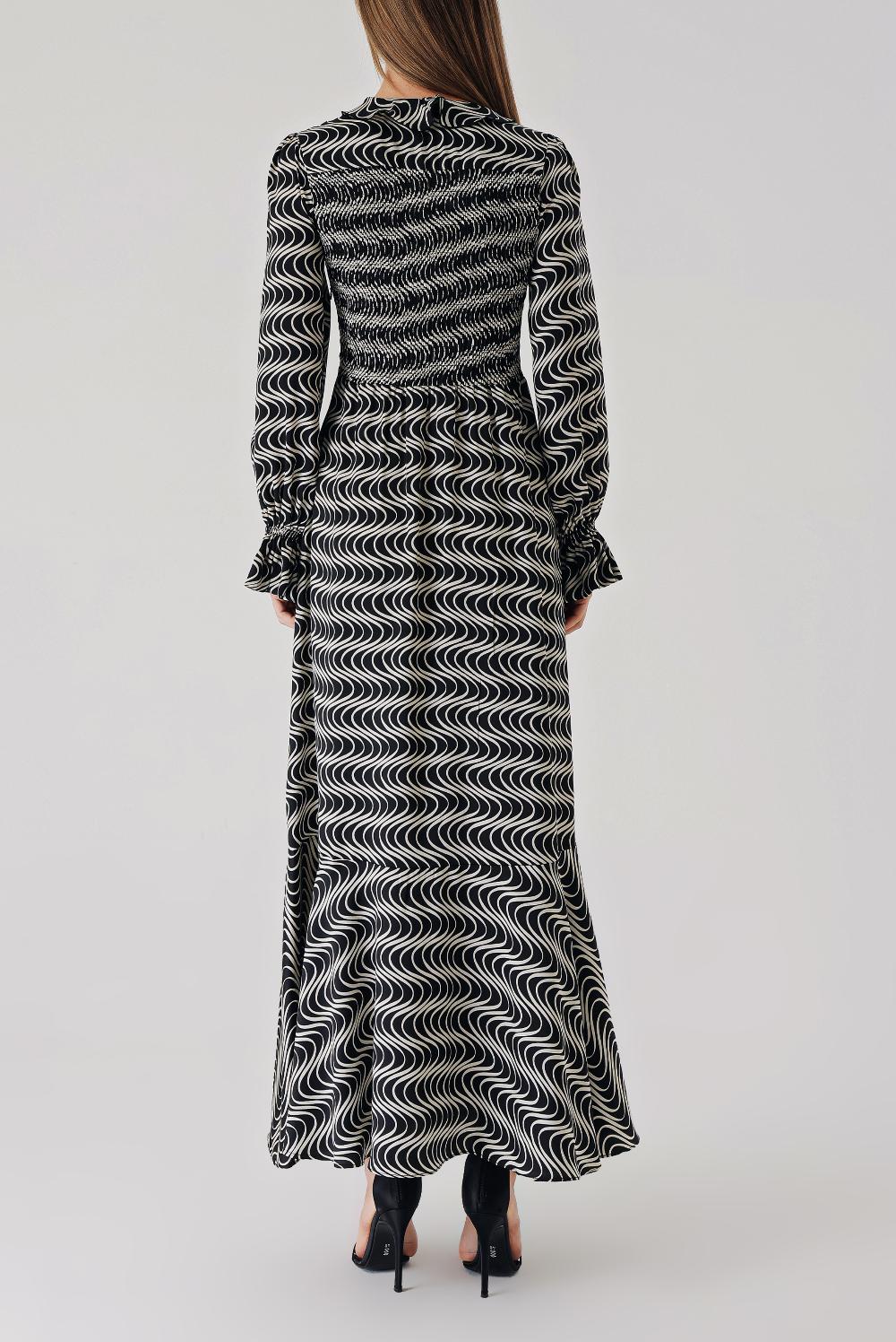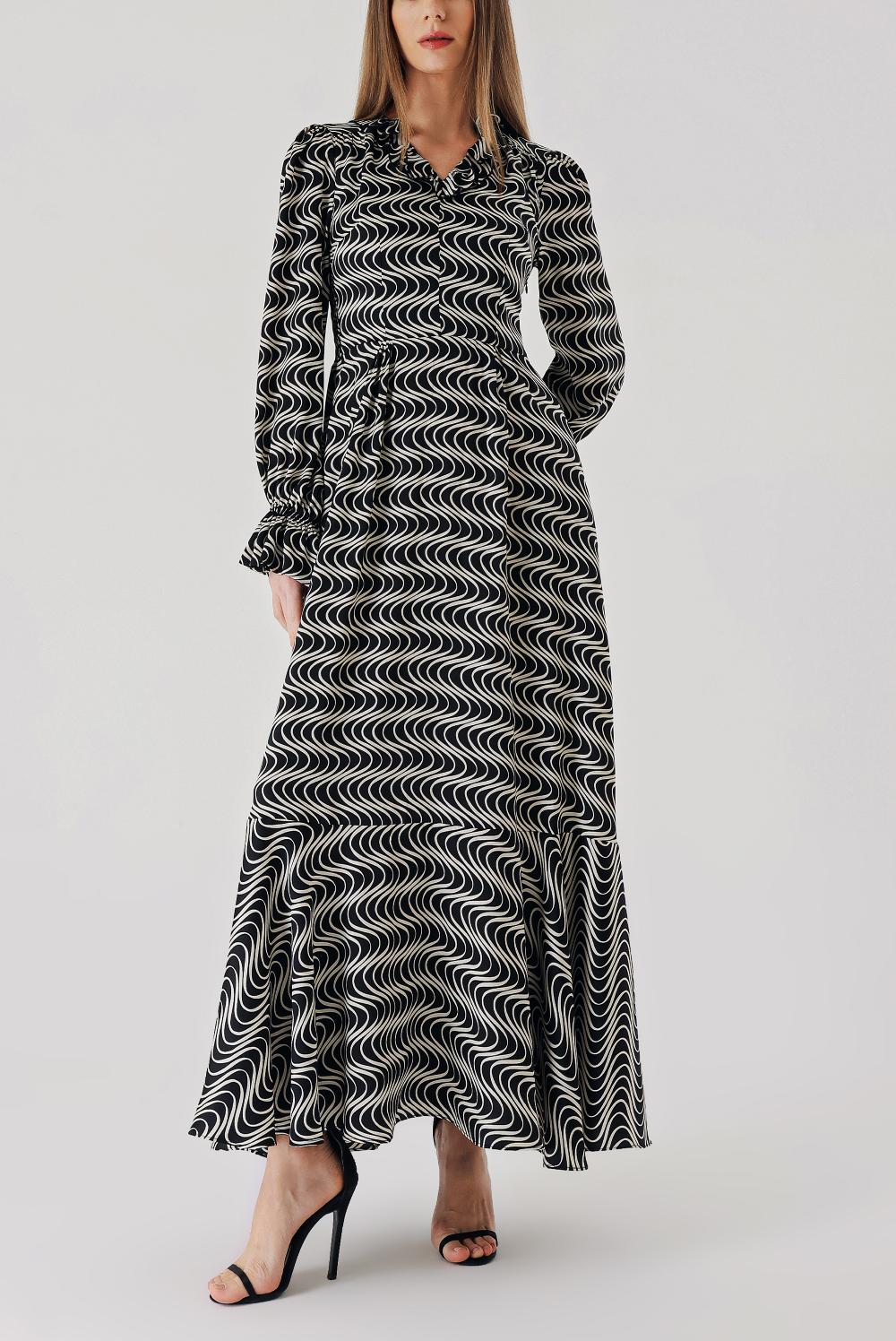 Siyah Beyaz Kollerı ve yakası fırfır detaylı uzun elbise 94413