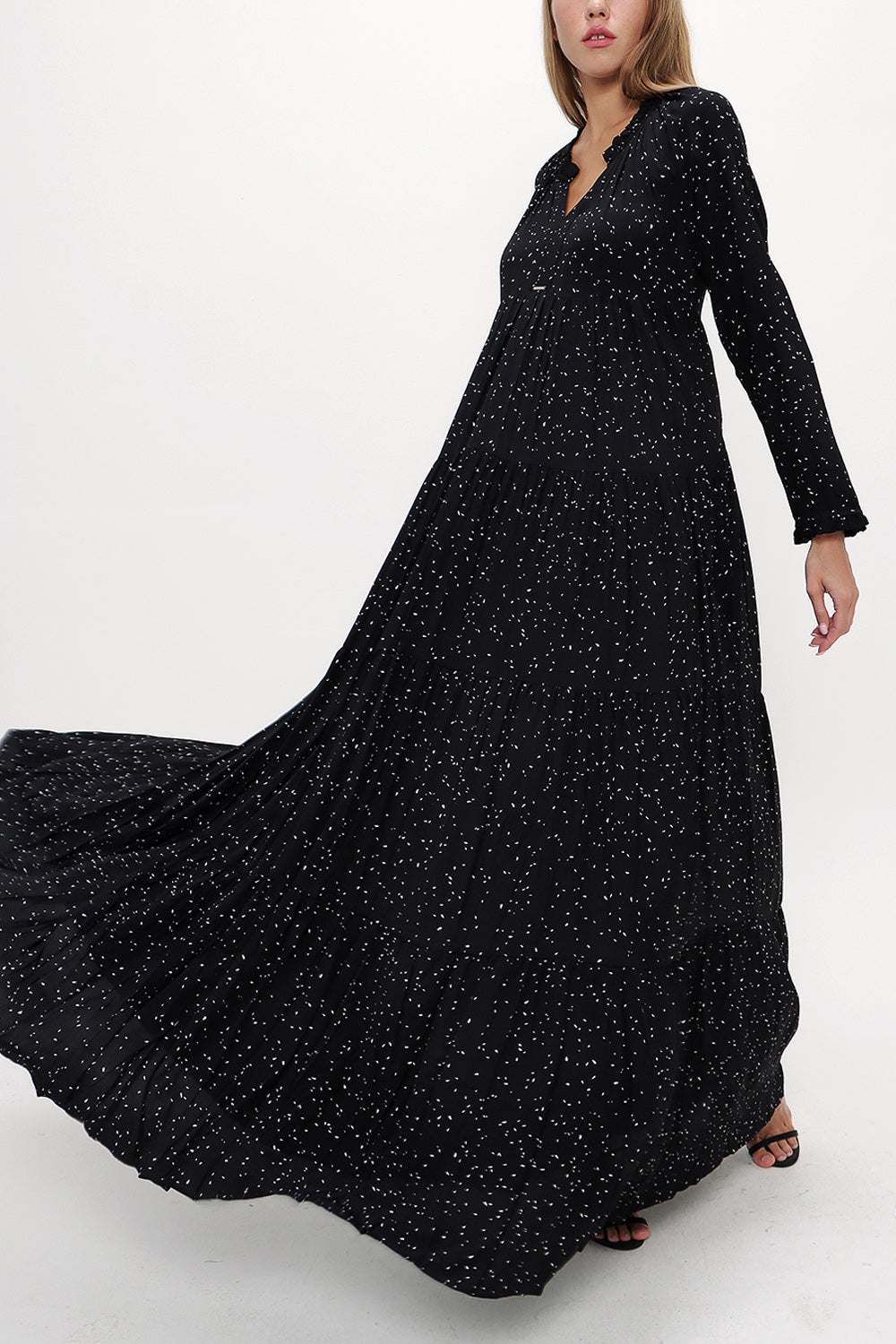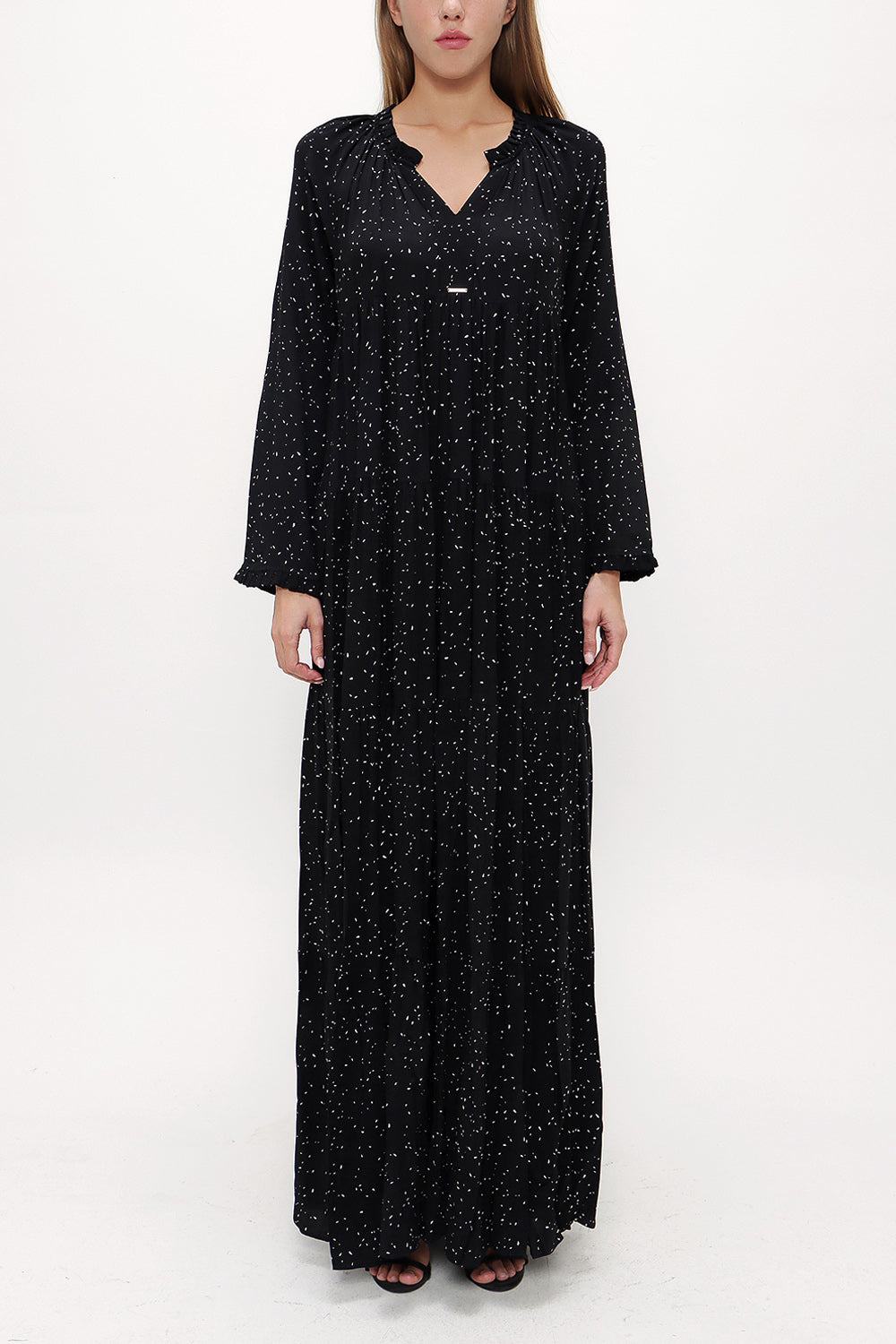 Siyah Bol kesim büzgülü uzun elbise 93332