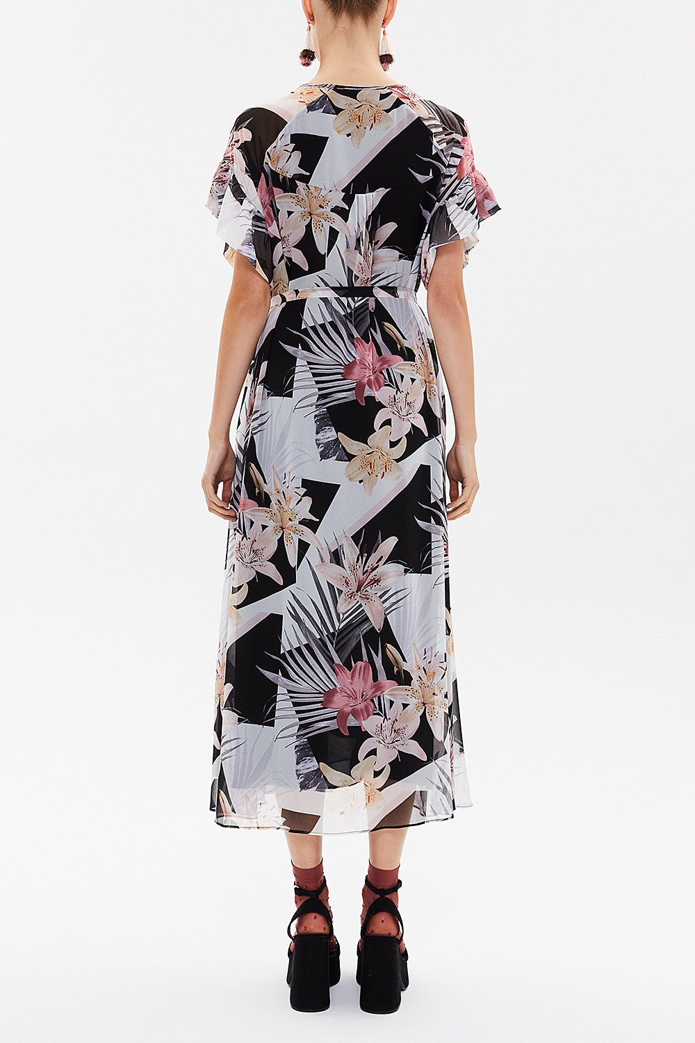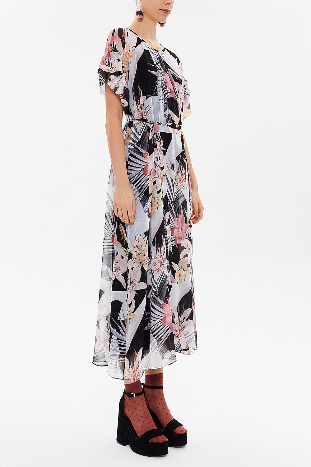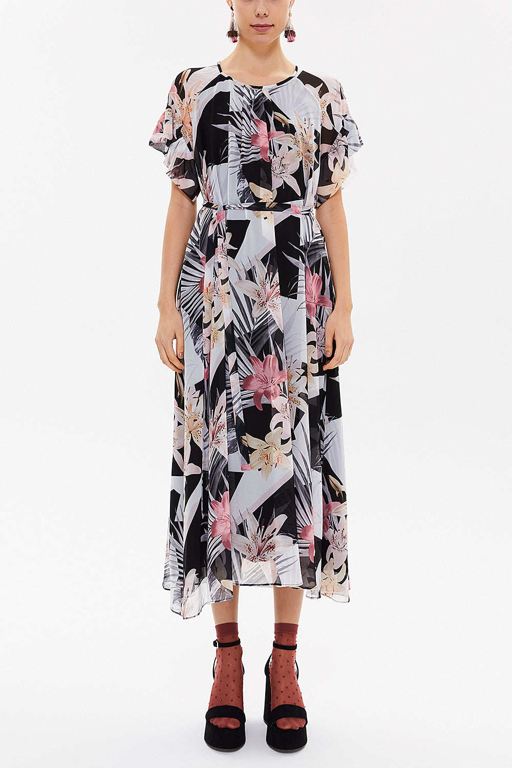 Siyah Bol kesim desenli şifon midi elbise 92919