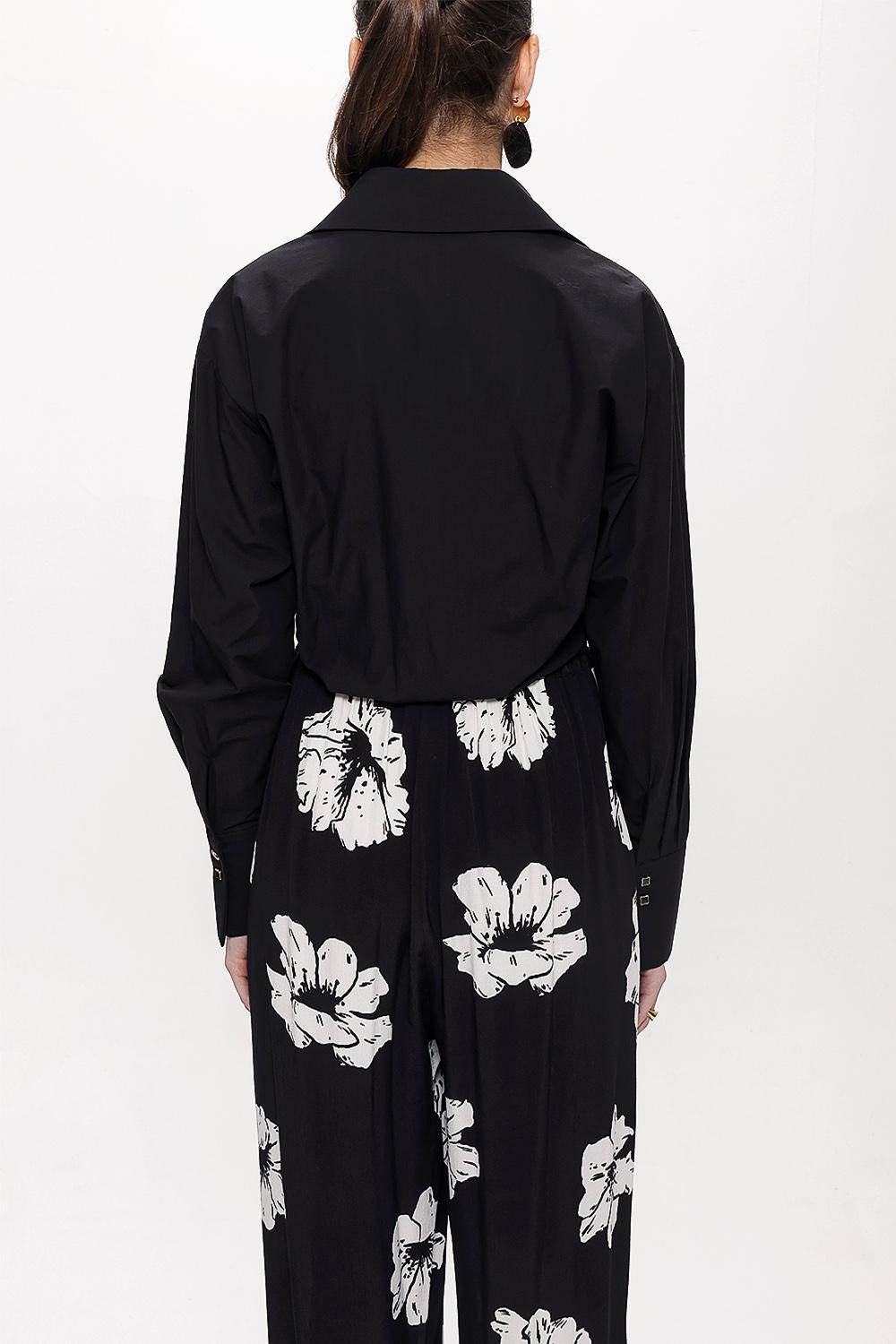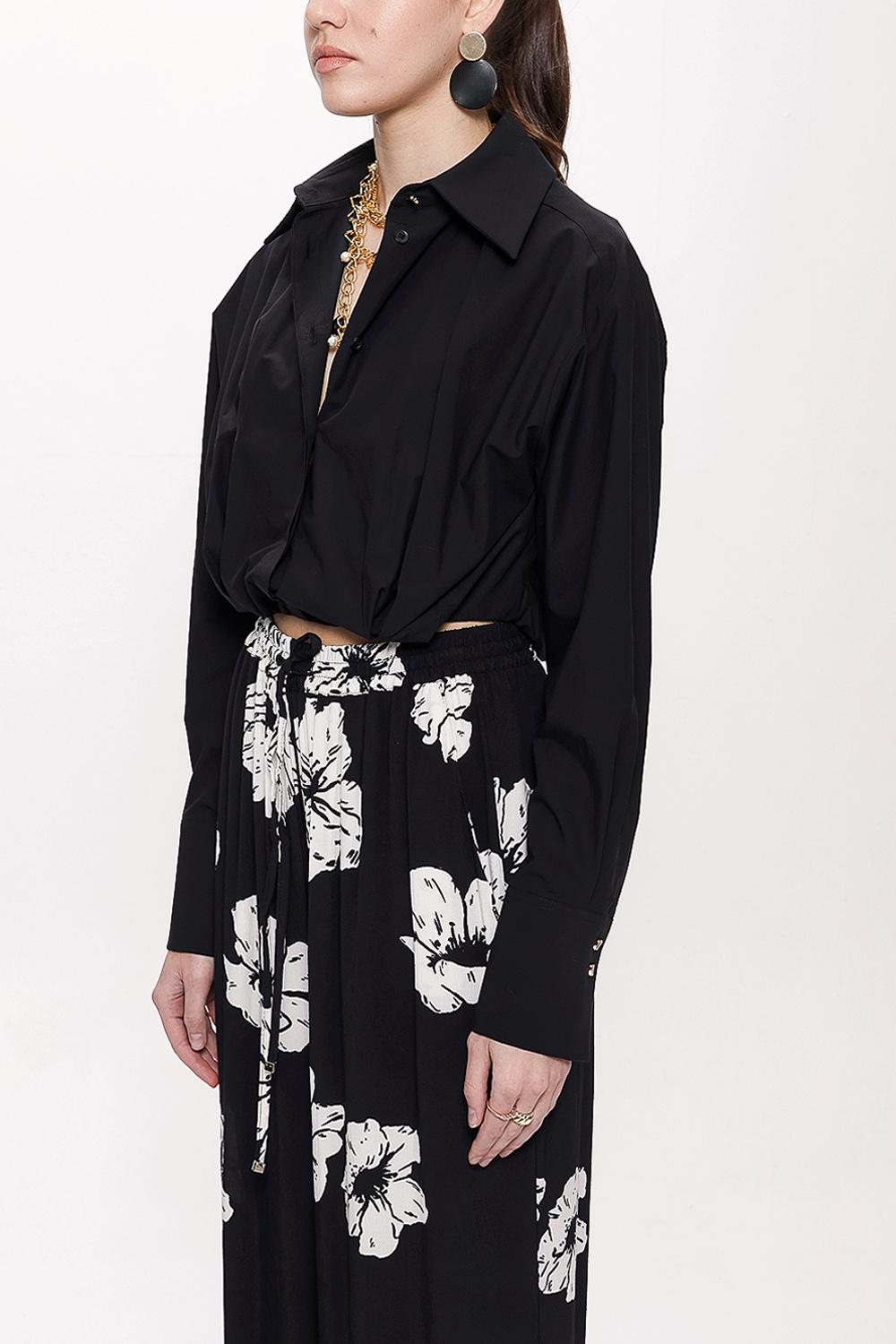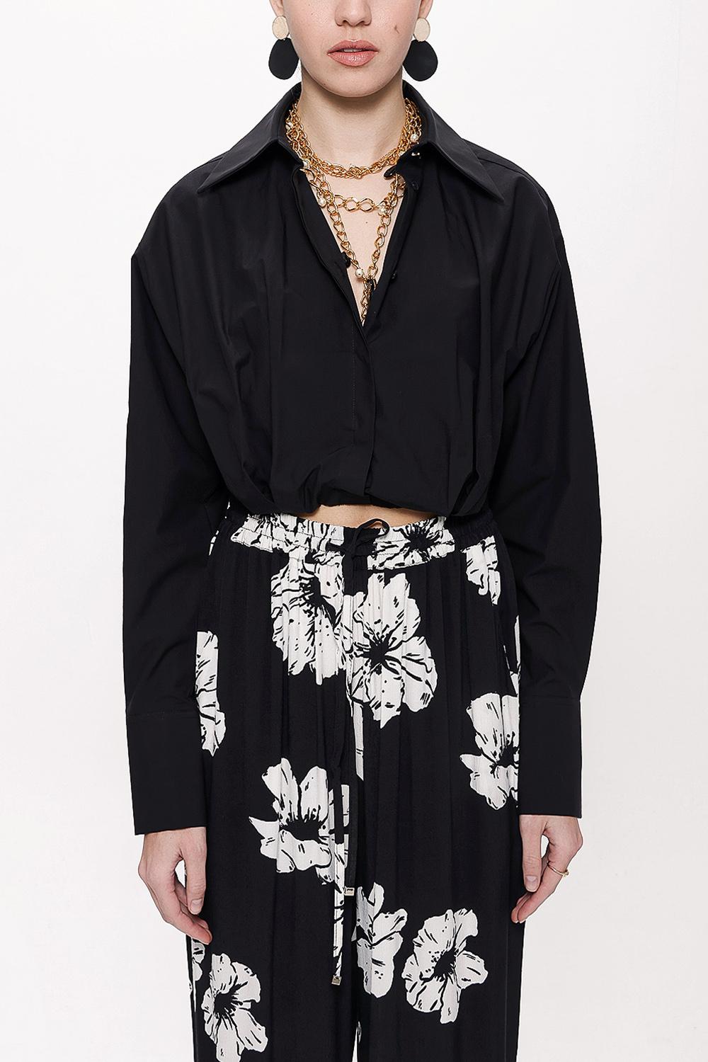 Siyah Bol kesim lastik detaylı gömlek 10818