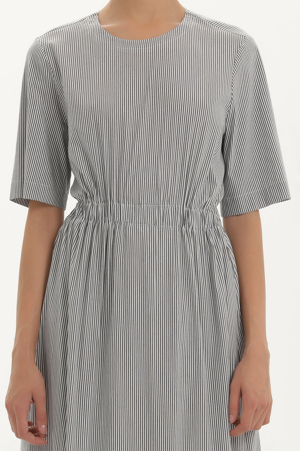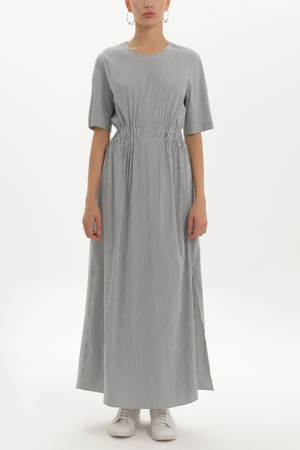 Siyah Çizgili Lastikli uzun elbise 92434