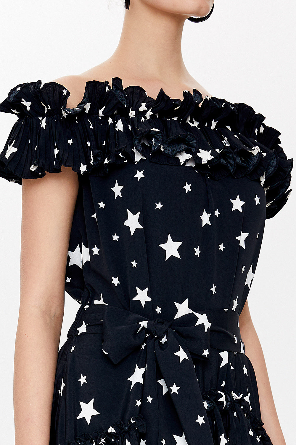Siyah Düşük omuz uzun elbise 93127