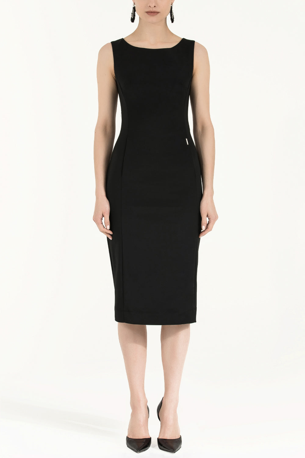 Siyah Fermuarlı dar kesim midi elbise 92363