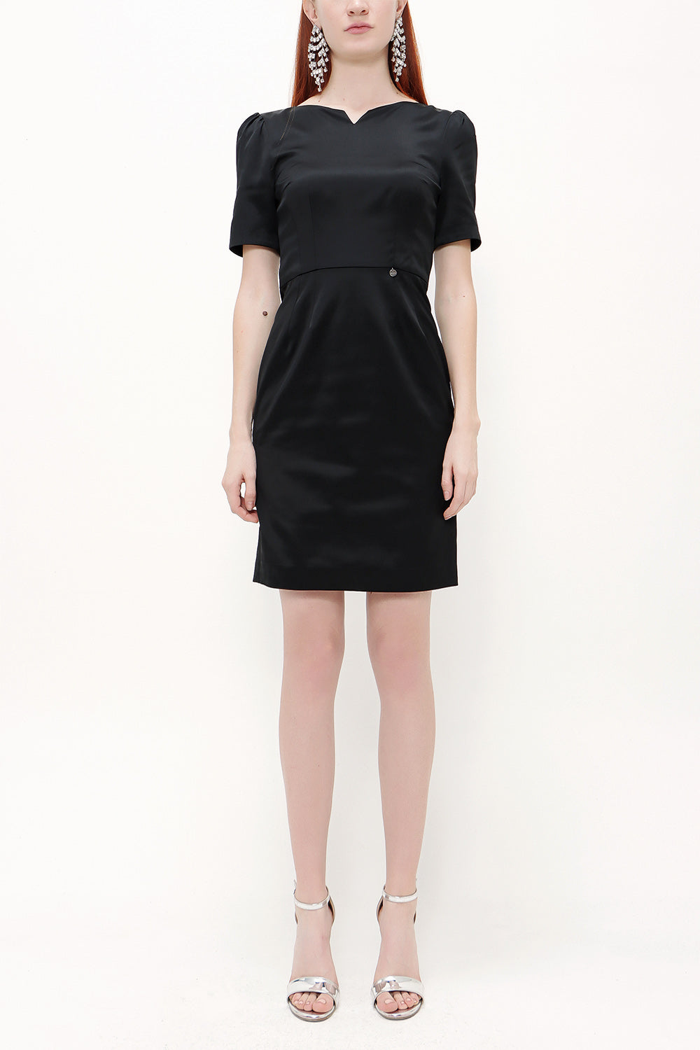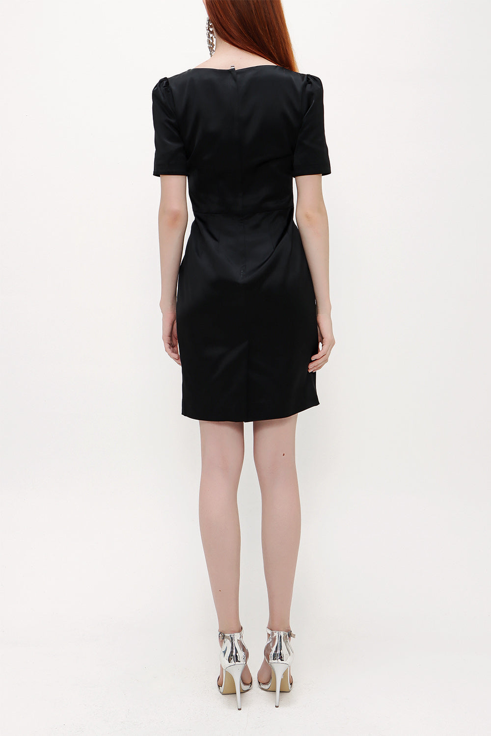 Siyah Jakarlı kolları büzgülü mini elbise 91437
