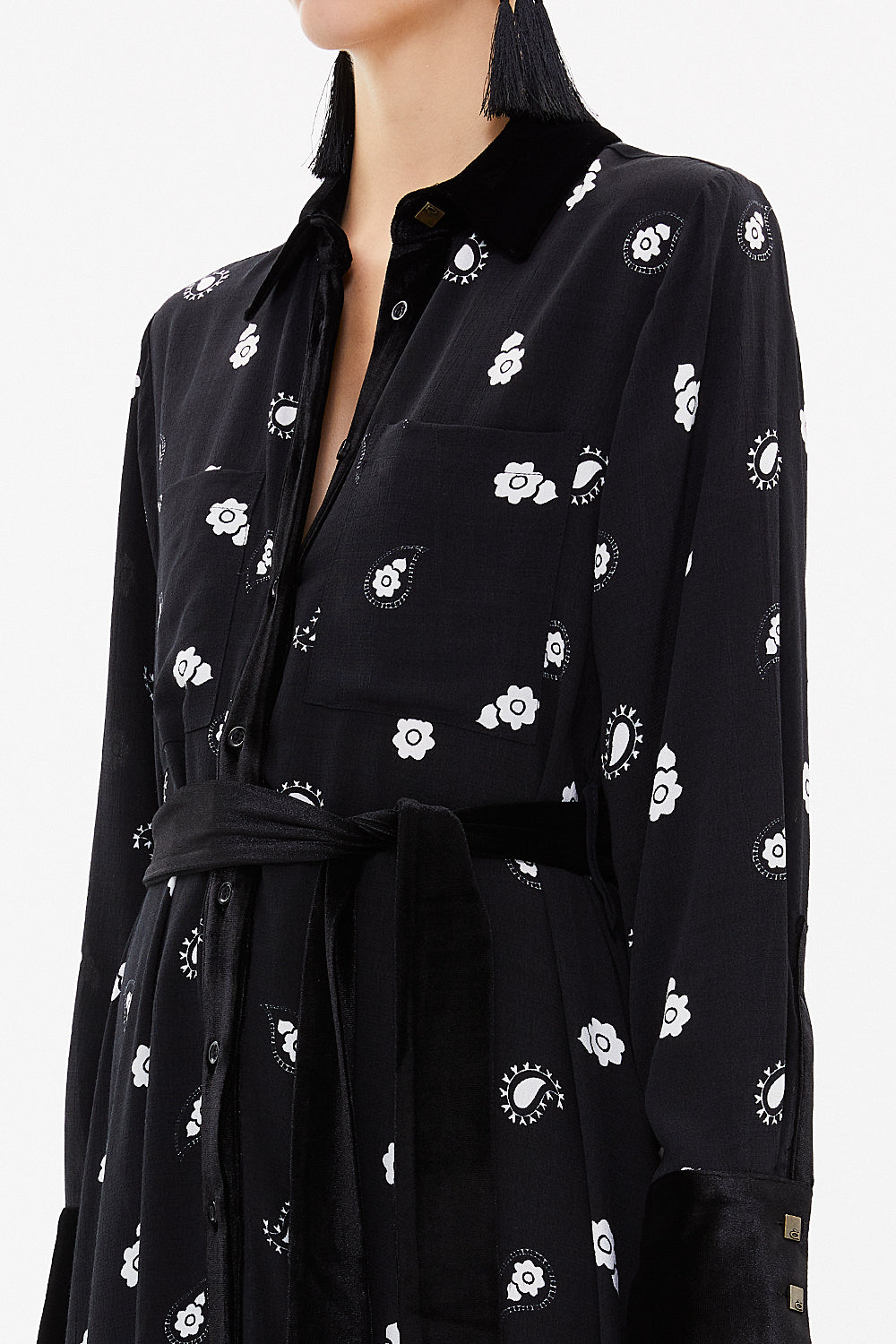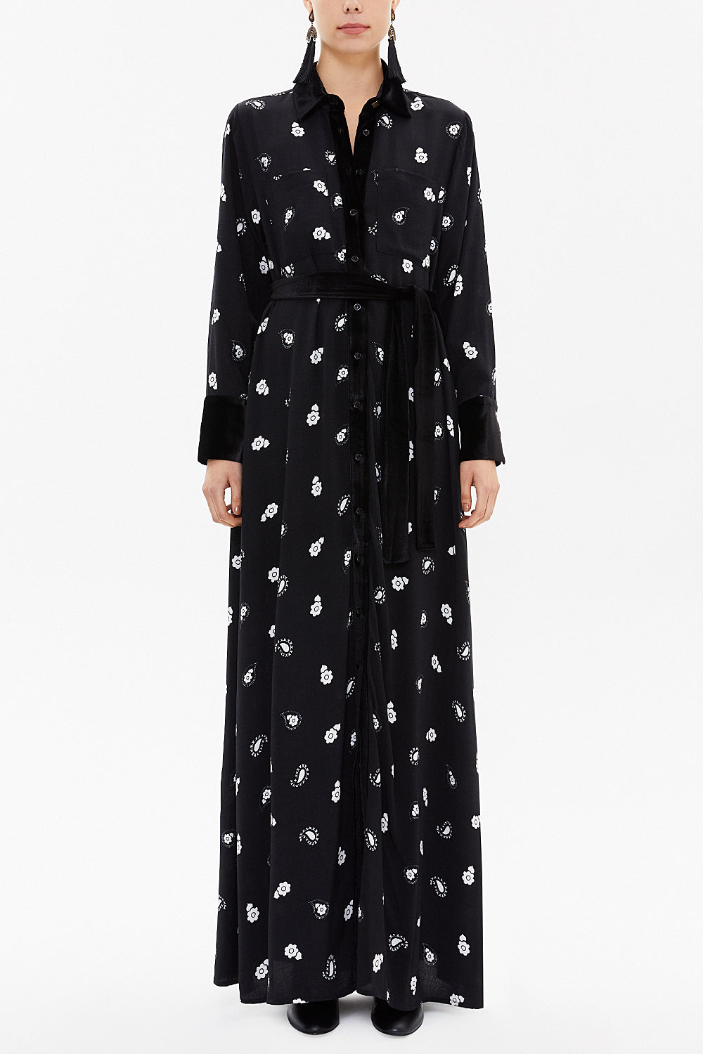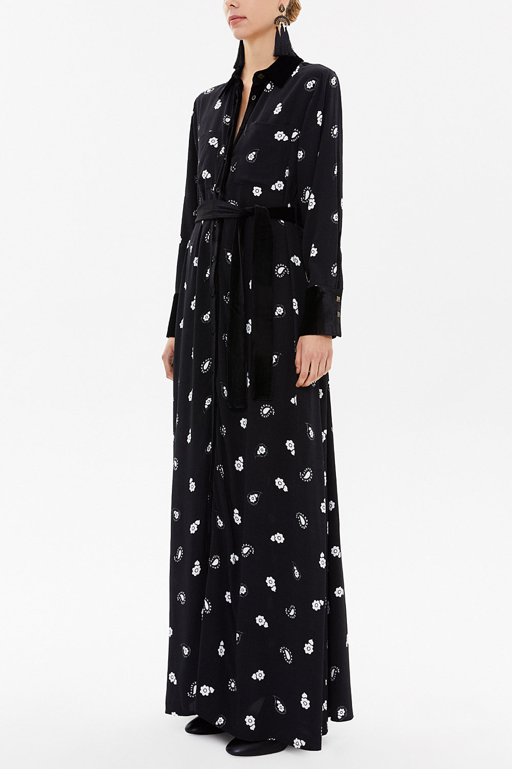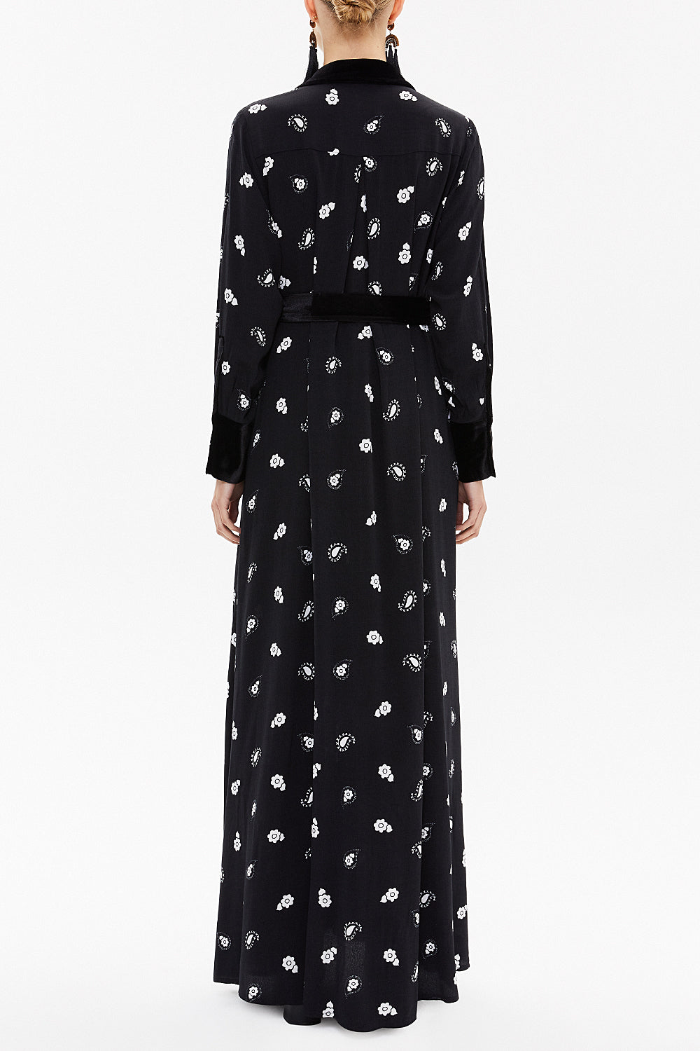 Siyah Kadife karışımlı bol kesim uzun elbise 92568