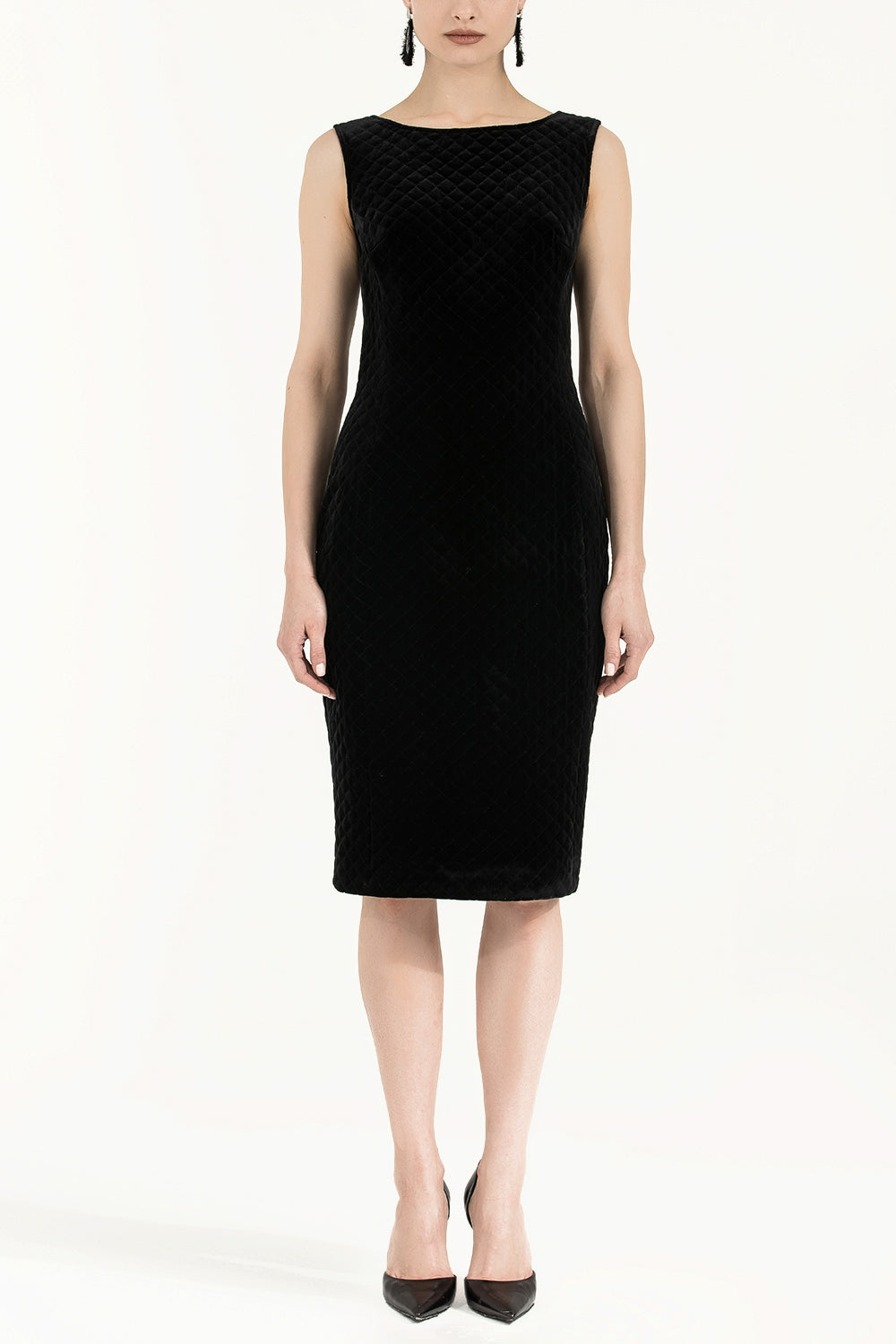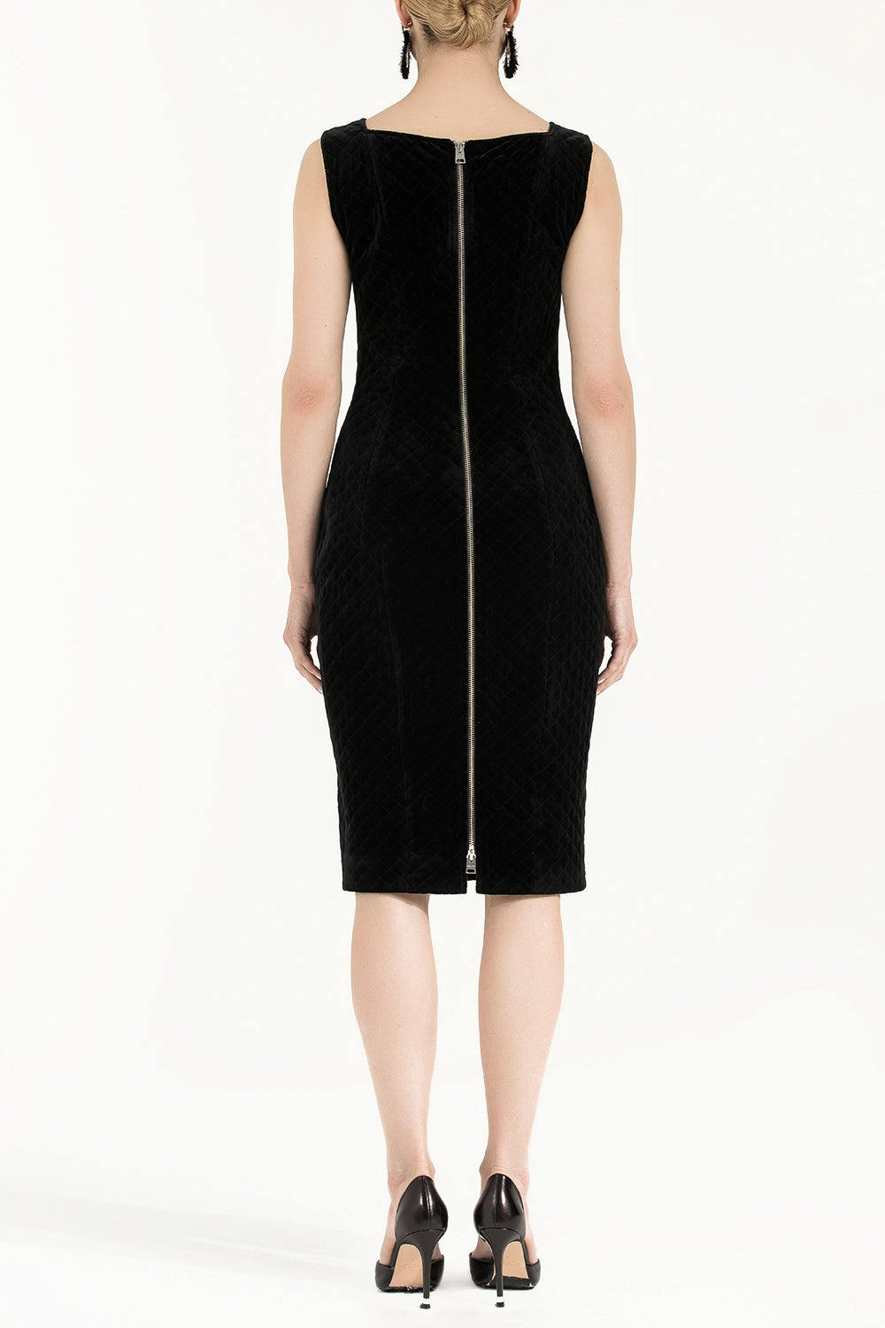 Siyah Kapitoneli ve fermuarlı kadife midi elbise 92277